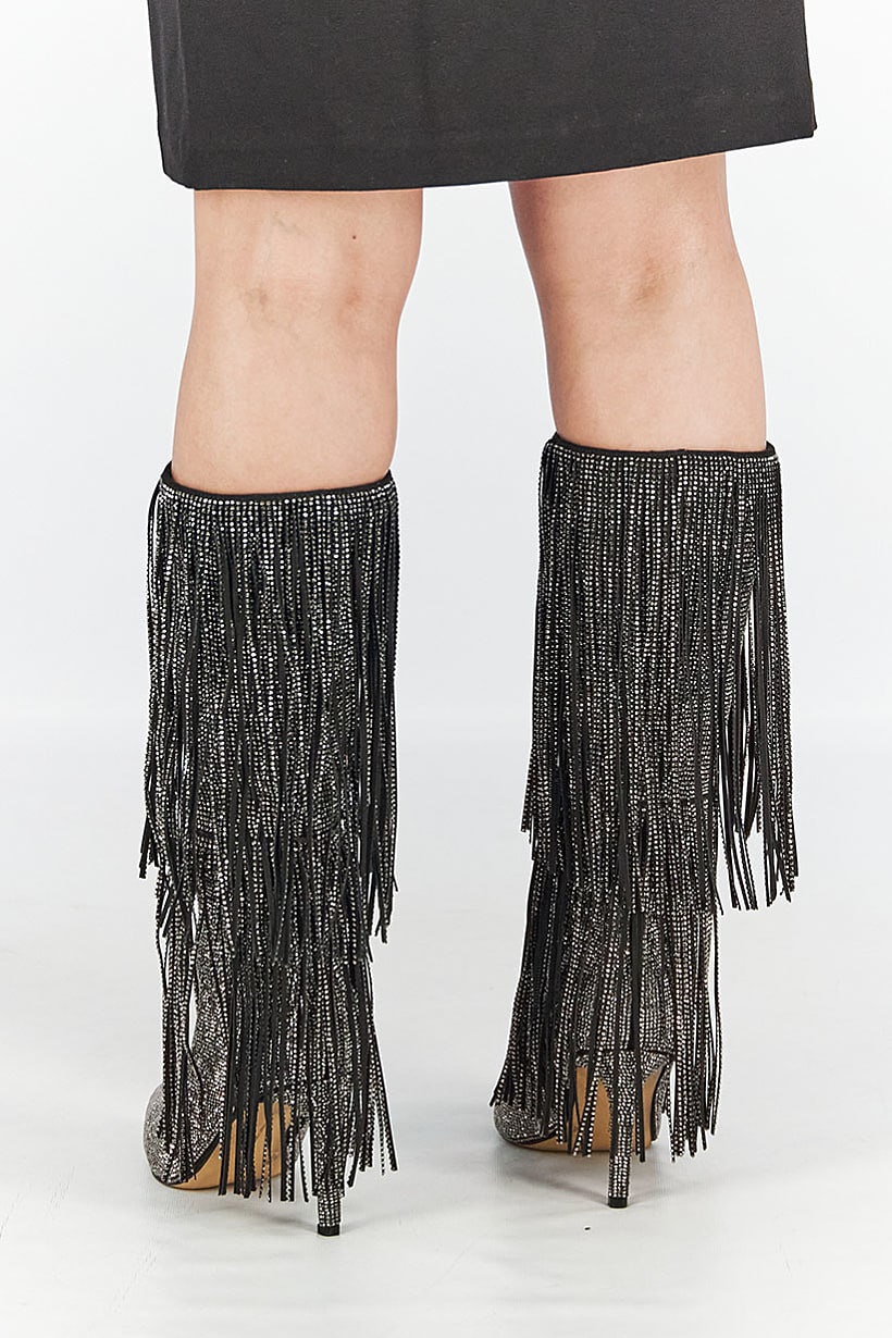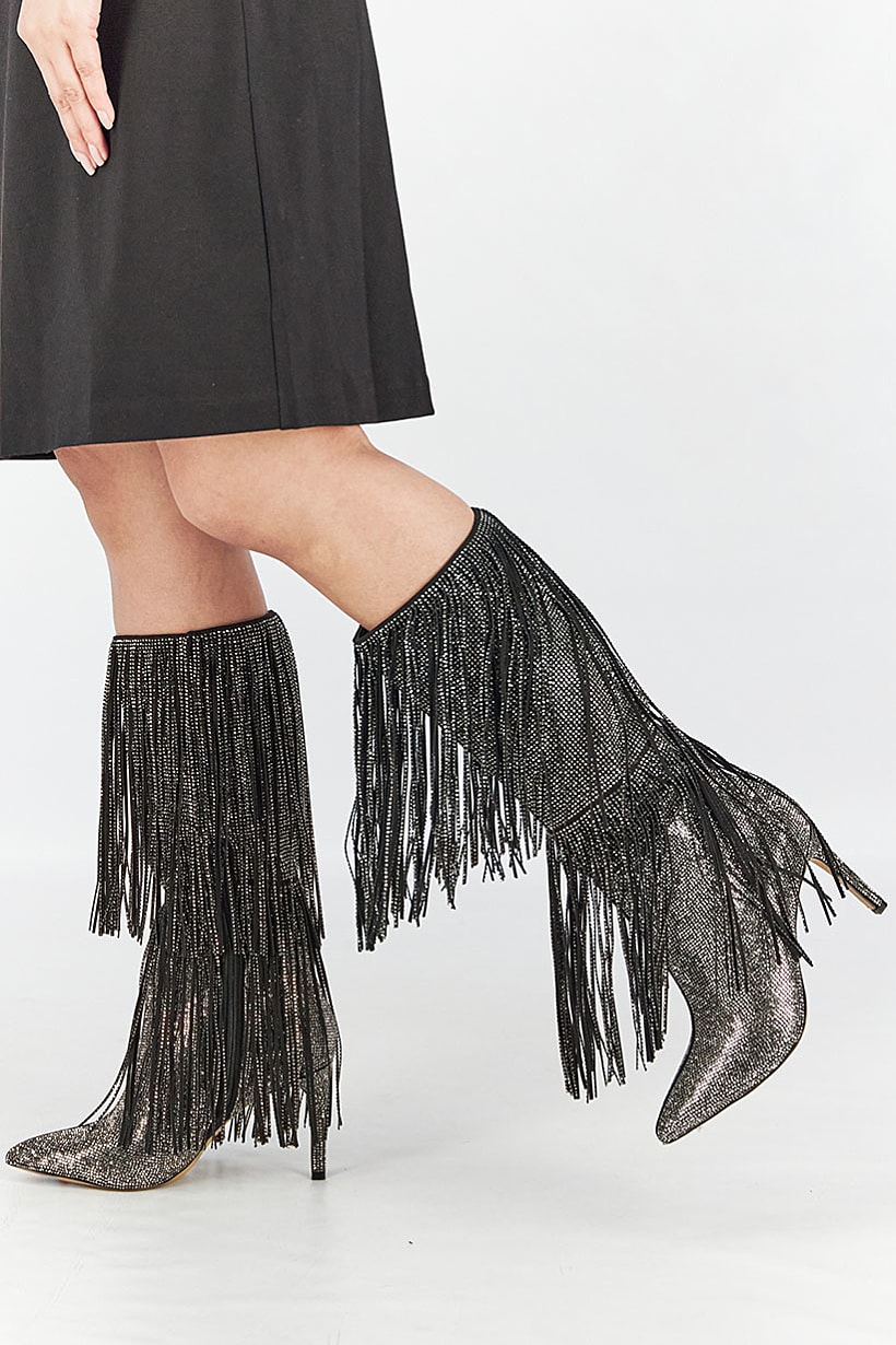 | sub_Categories | Shoes, Boots, women zipper closure metallic snakeskin knee length boots black |