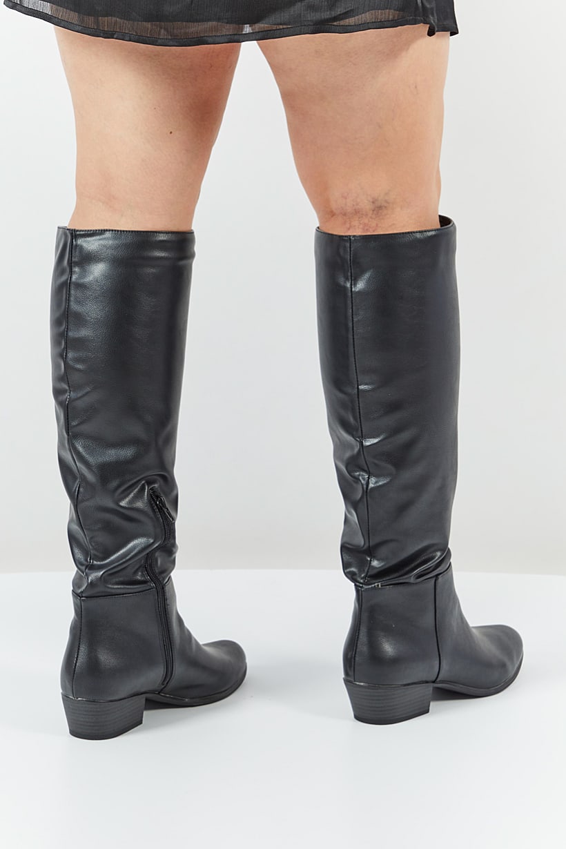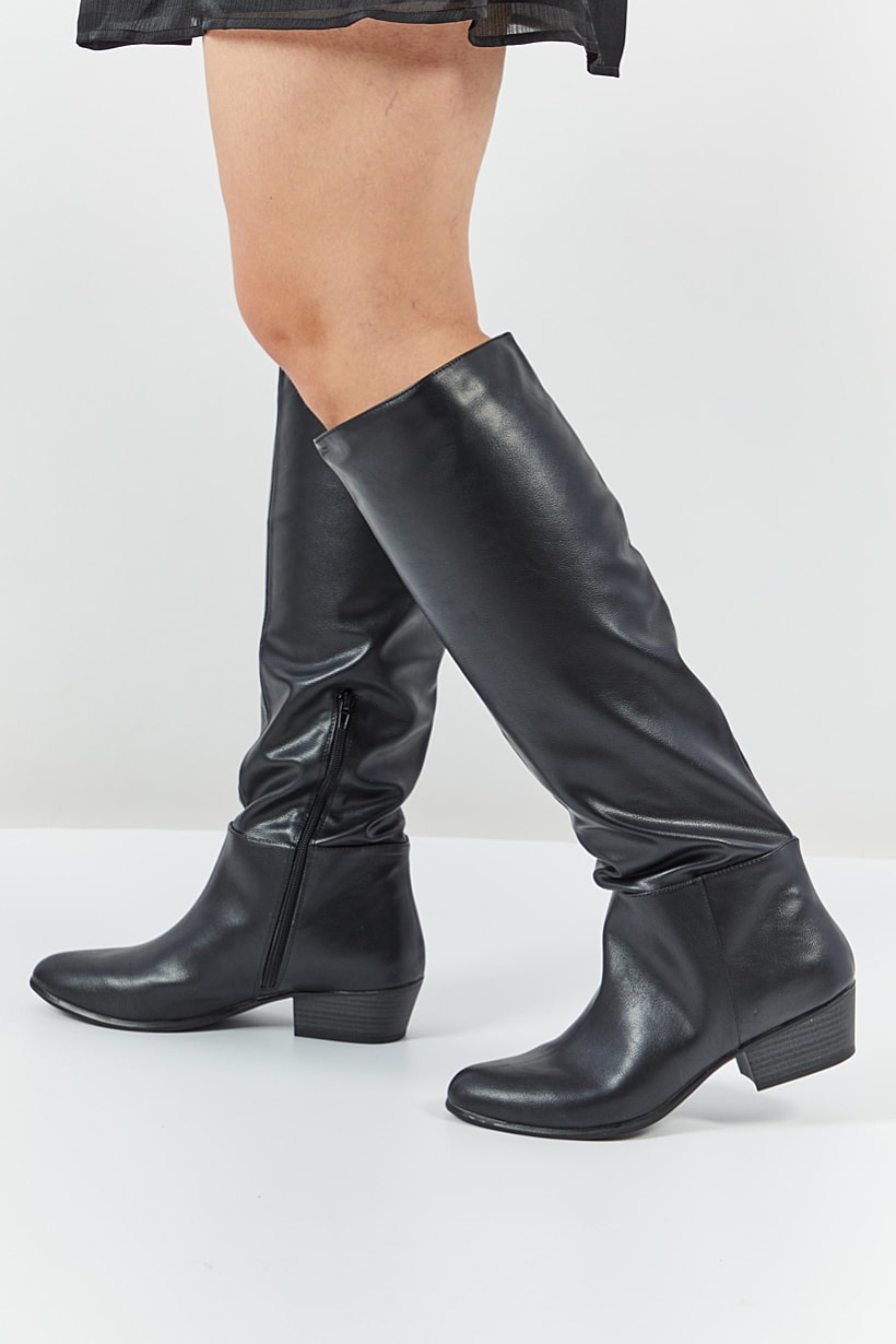 | descriptionOriginal | Heel Height : 2" / 5 cm, Heel Style : Block heel, Ideal For : Women, Shoe Closure : Zipper closure, Shoe Width : Standard, Sole Material : Synthetic sole, Style : Knee-length boot, Toe Style : Closed toe, Occasion : Casual, Shoe Material : Synthetic Leather, Color Family : Black, |