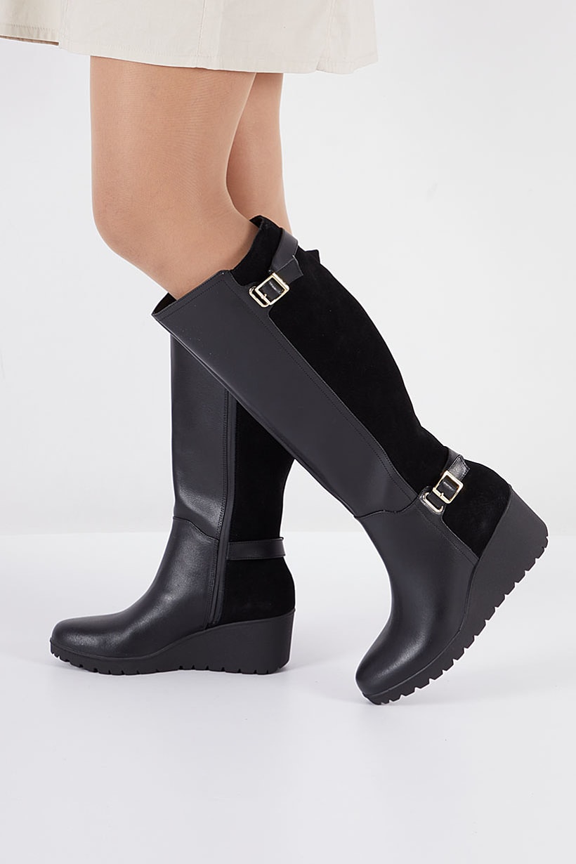 | sub_Categories | Shoes, Boots, women medium sannaa wedge heel knee length boots black |