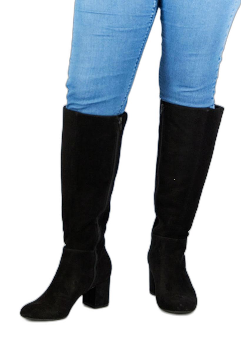 These knee-length boots are perfect for women who prefer a block heel style. The zipper closure ensures a secure fit, while the medium shoe width and synthetic sole provide comfort and durability. The pointed toe adds a touch of elegance to the overall casual style, making it suitable for various occasions. The boots are made of black fabric and have a heel height of 2.75″ / 6.9 cm.