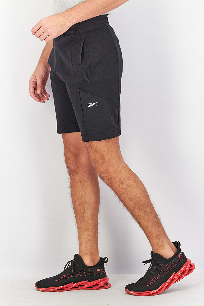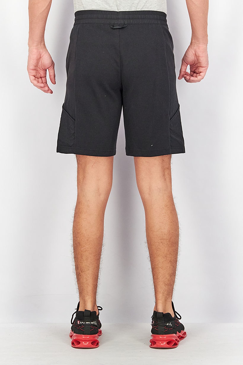 Black Knit Woven Sport Fit Training Shorts for Men.
