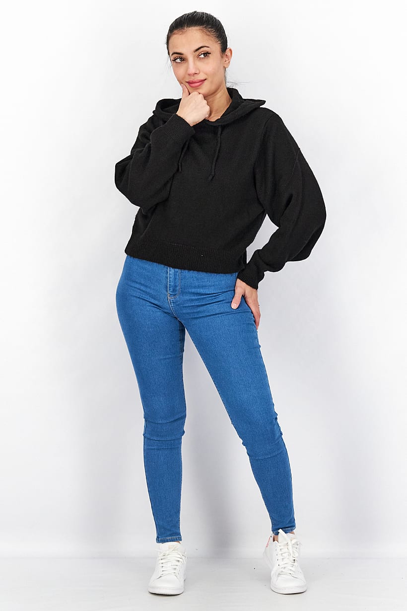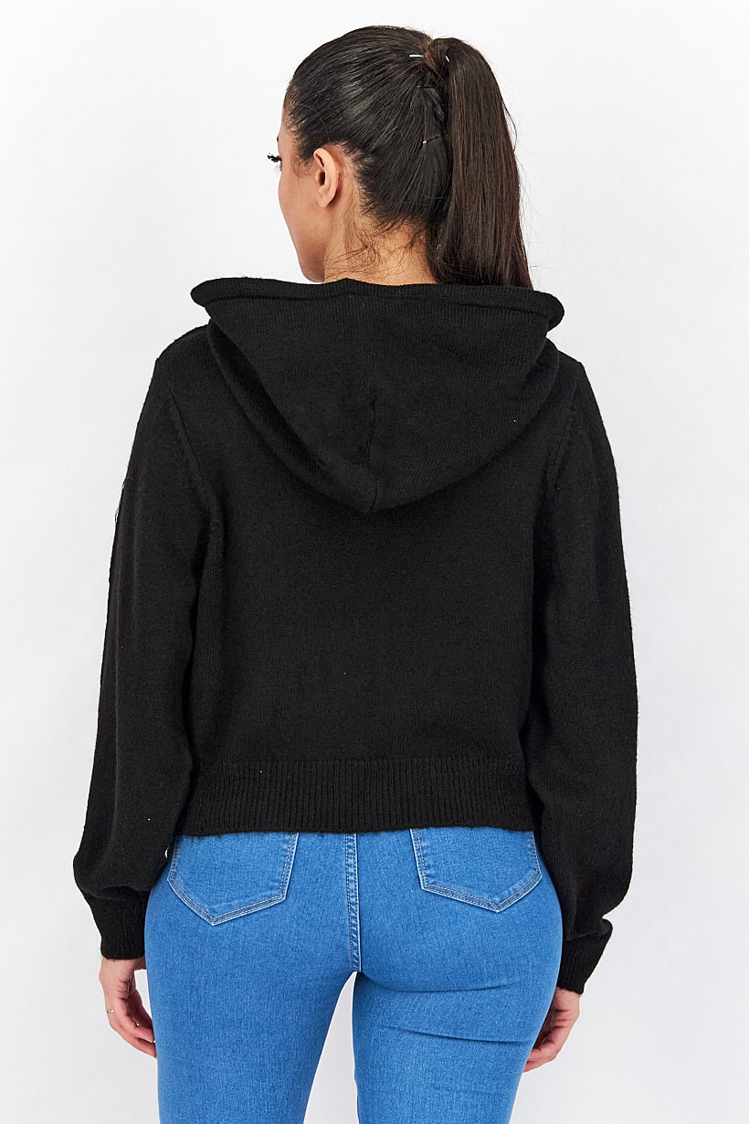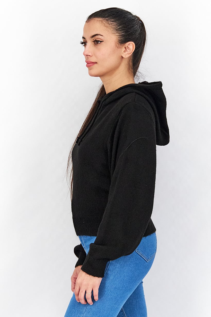 | nameOriginal | Women Hooded Drawstring Knitted Sweater, Black |