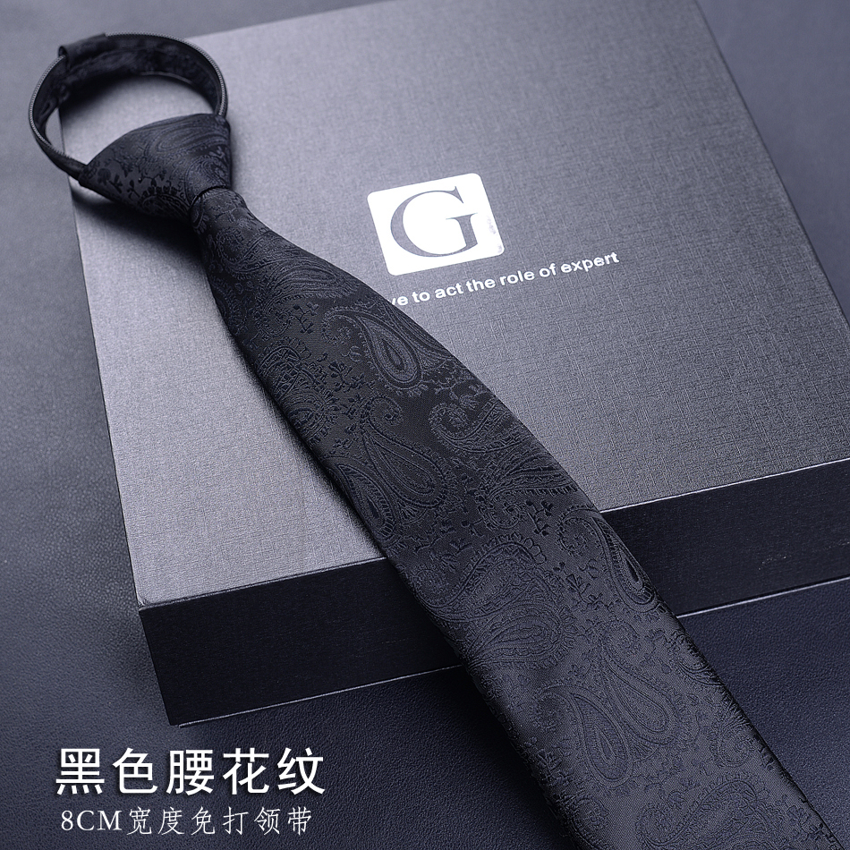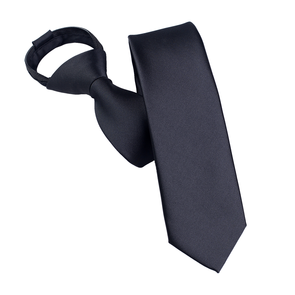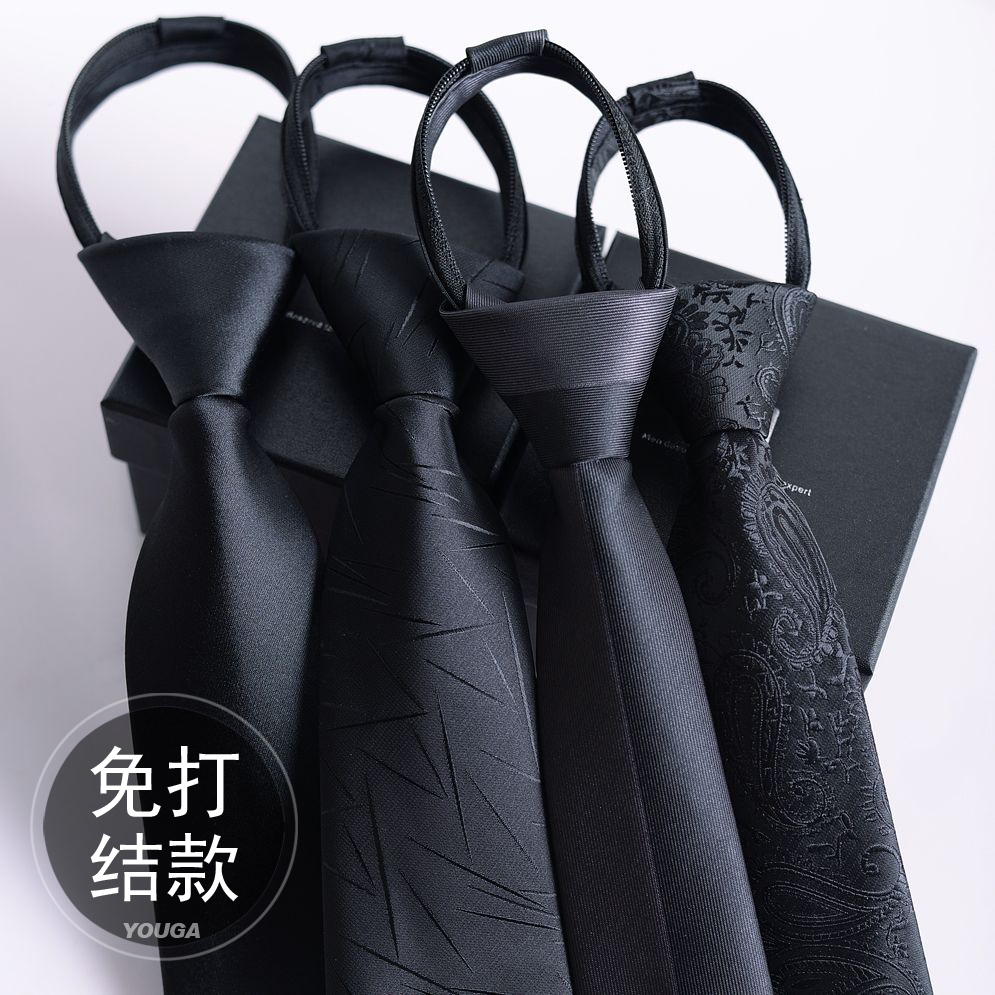 Black Knot-free Tie Men’s Easy-to-pull Work Student Lazy Zipper Easy-to-pull Solid Color Tie Men’s Fashion