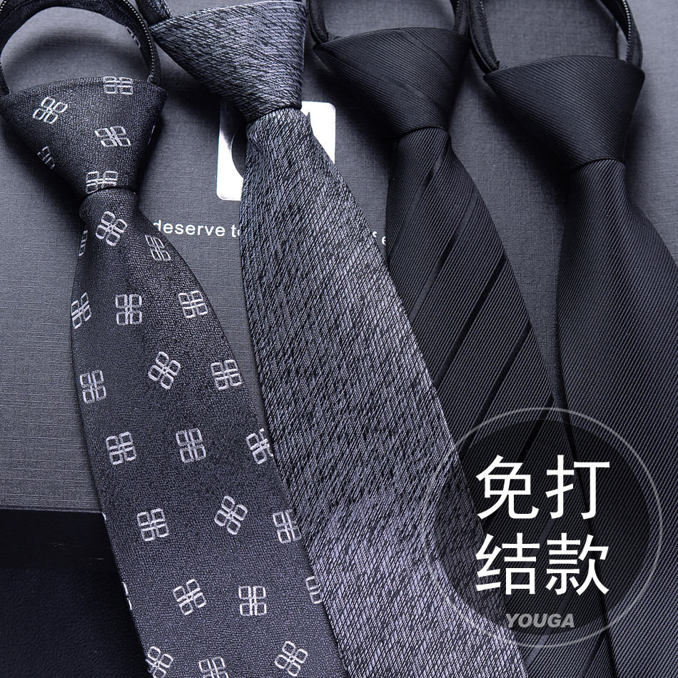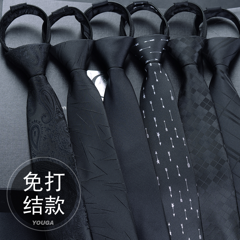 Black Knot-free Tie Men's Easy-to-pull Work Student Lazy Zipper Easy-to-pull Solid Color Tie Men's Fashion