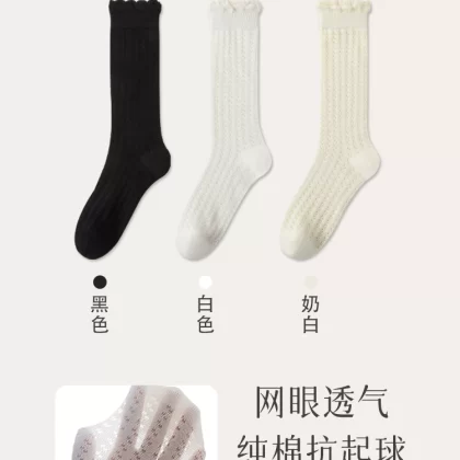 | nameOriginal | Black lace socks women's mid-calf socks summer thin cotton mesh breathable spring and summer pile socks lolita stockings |