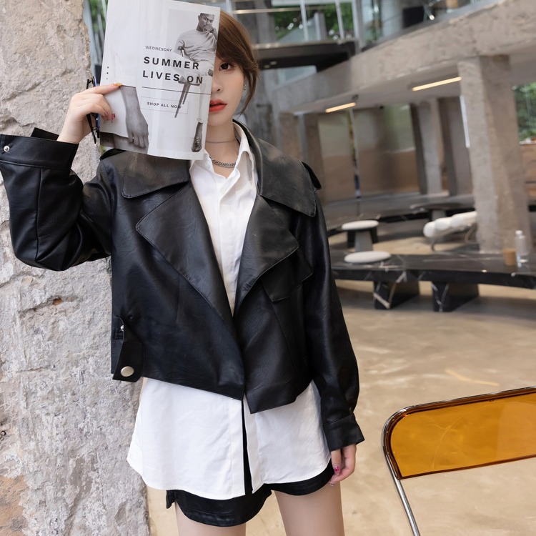 | nameOriginal | Black Lapel leather jacket for women 2023 Autumn New Korean style fashionable fashionable fashionable versatile pu leather jacket |