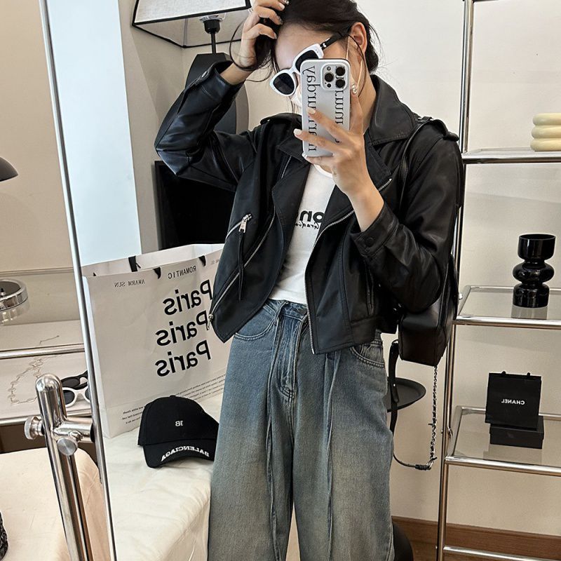 | nameOriginal | Black Lapel pu leather coat women's autumn loose small temperament motorcycle short jacket top |