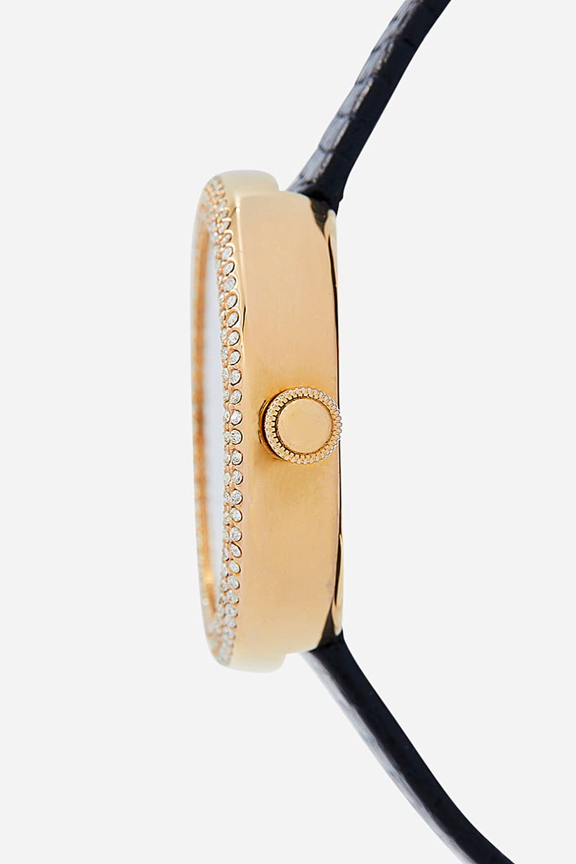 Dial Shape : Round, Dial Window Material : Glass, For Gift : Yes, Ideal For : Women, Strap Color : Black, Strap Material : Leather, Types of Watch : Analog, Watch Closure : Buckle, Dial Color : Rose Gold, Disclaimer : Product color may slightly vary due to photographic lighting sources or your monitor settings., Color Family : Black, Display Type : Markers,