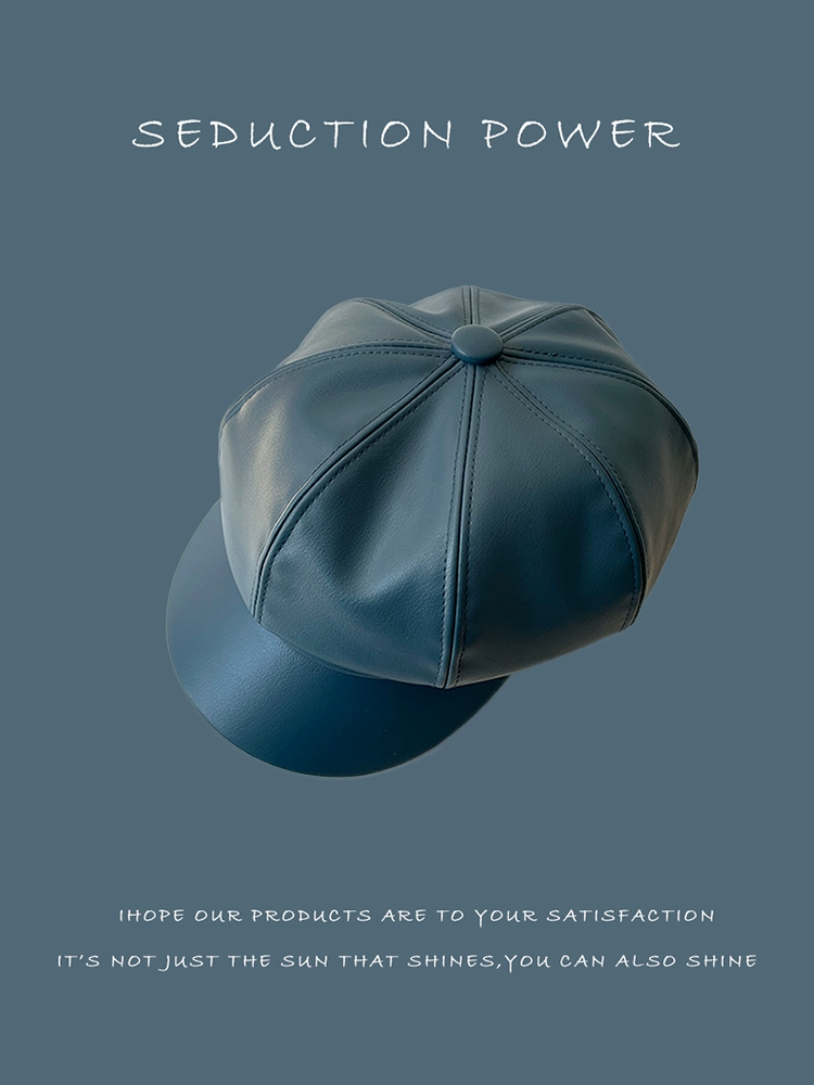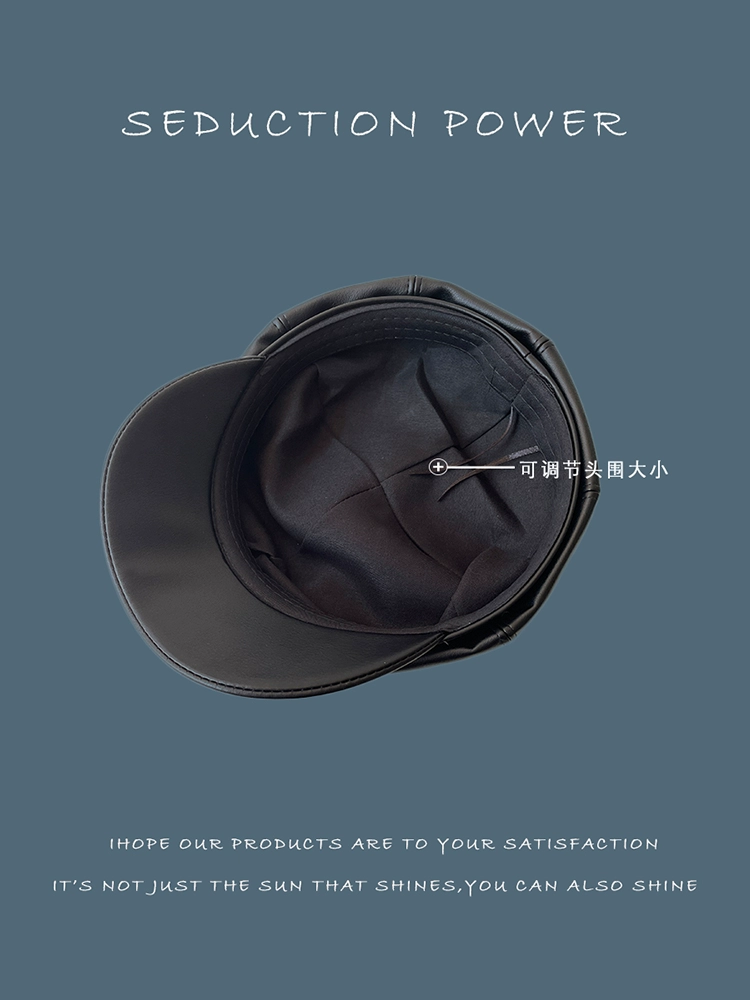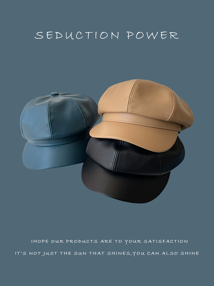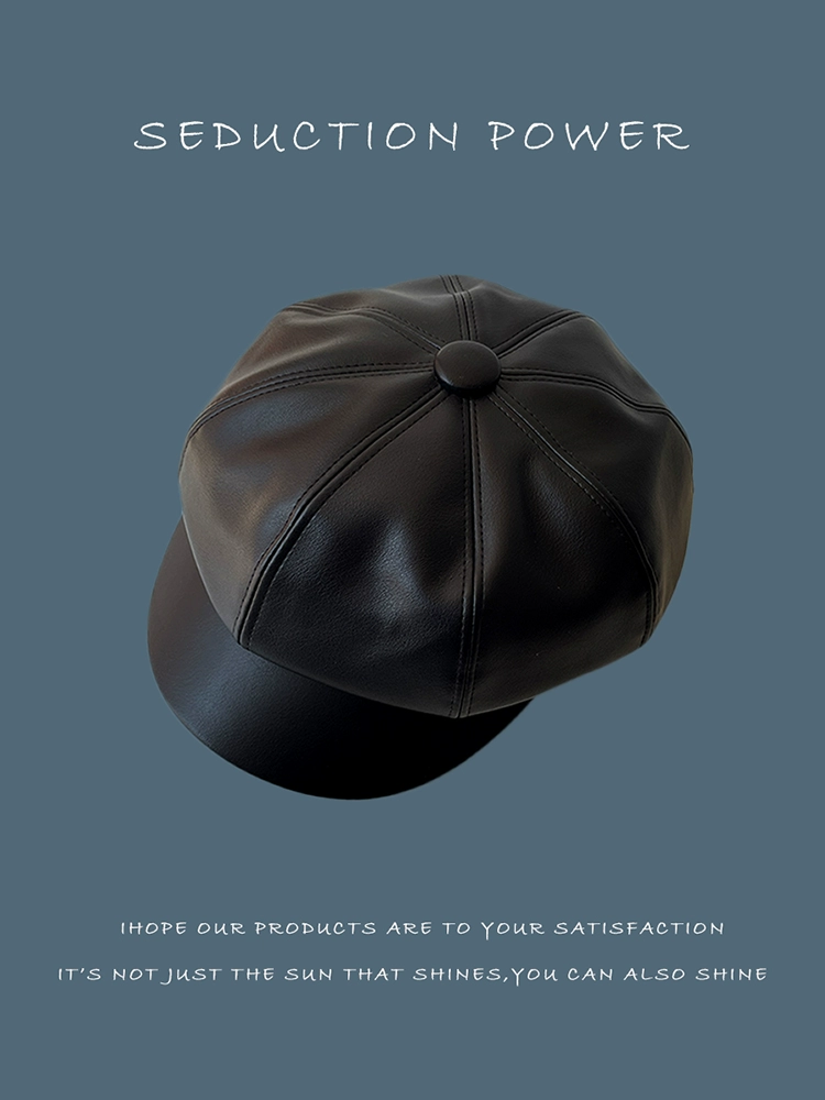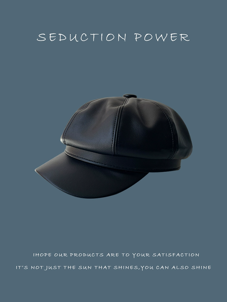 | nameOriginal | Black leather beret women's British design retro versatile Japanese Korean style spring and autumn pumpkin octagonal hat |