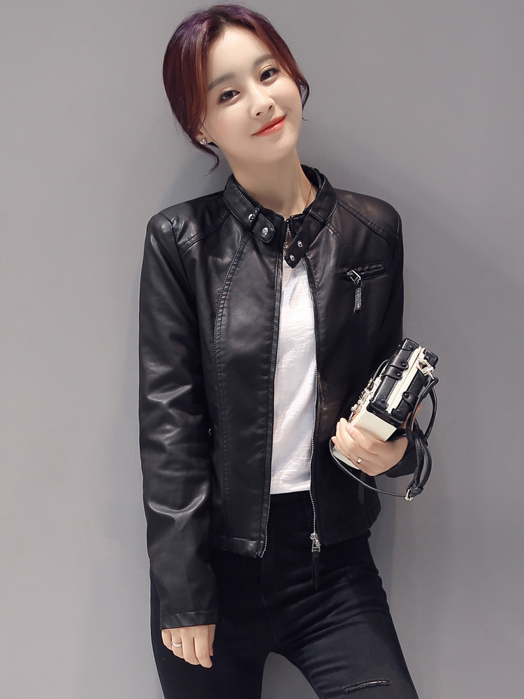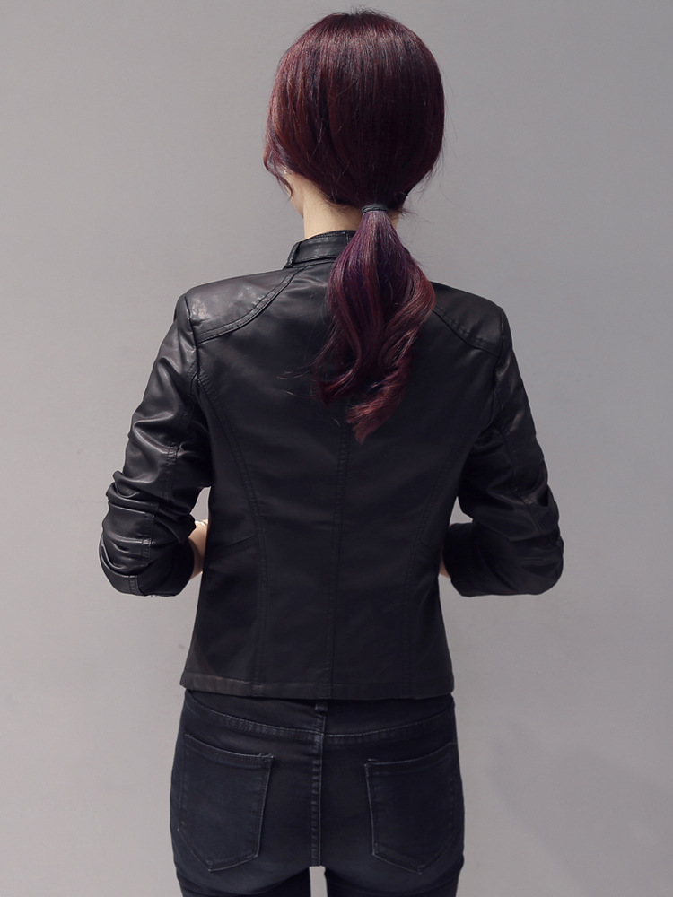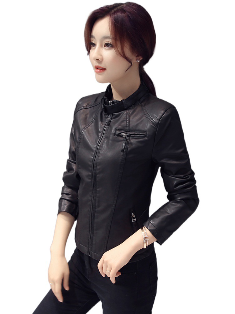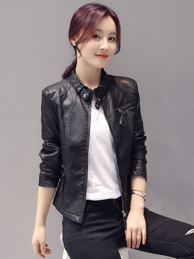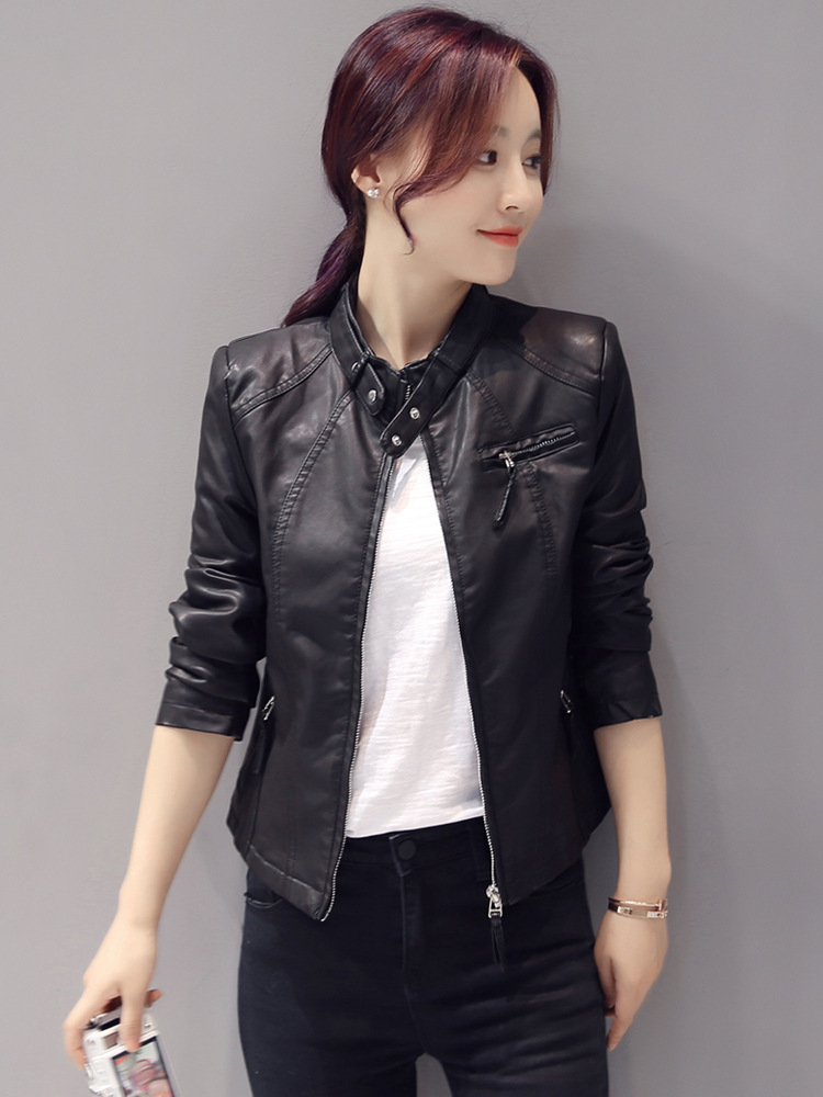 | nameOriginal | Black leather coat women's short 2023 autumn and winter new small elegant slim slimming motorcycle leather jacket |