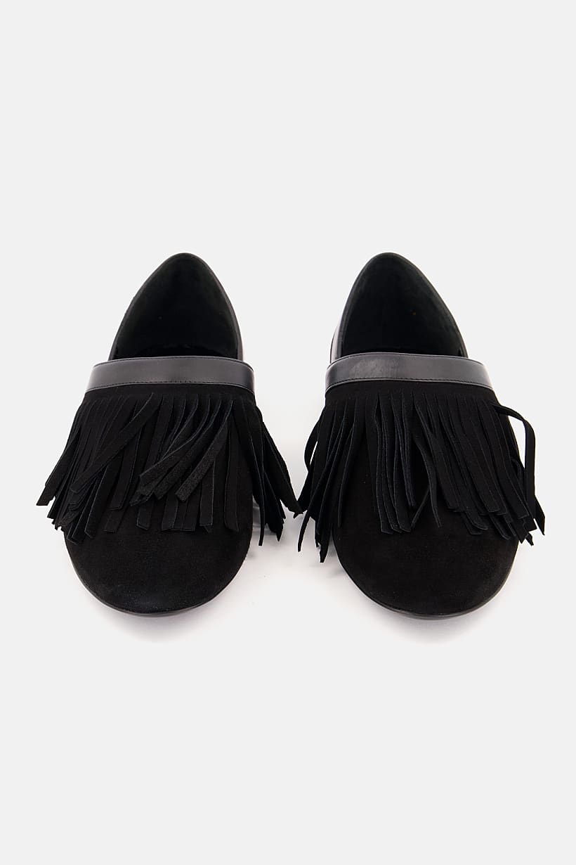 | sub_Categories | Shoes, Flats, women slip on tasselled leather flat shoes black |