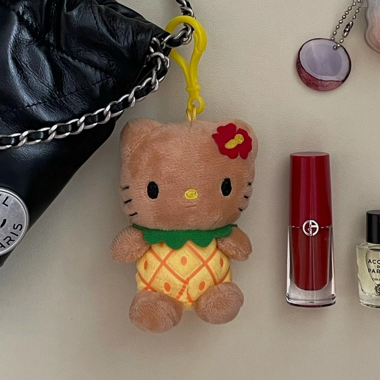 | nameOriginal | Black leather Hello Kitty mobile phone pendant decorative keychain |