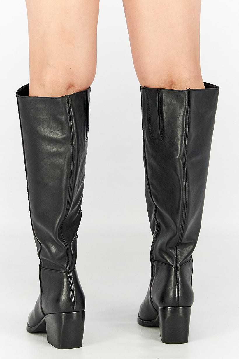 Black Leather High Shaft Boots for Women with Wide Calf, Medium Size.
