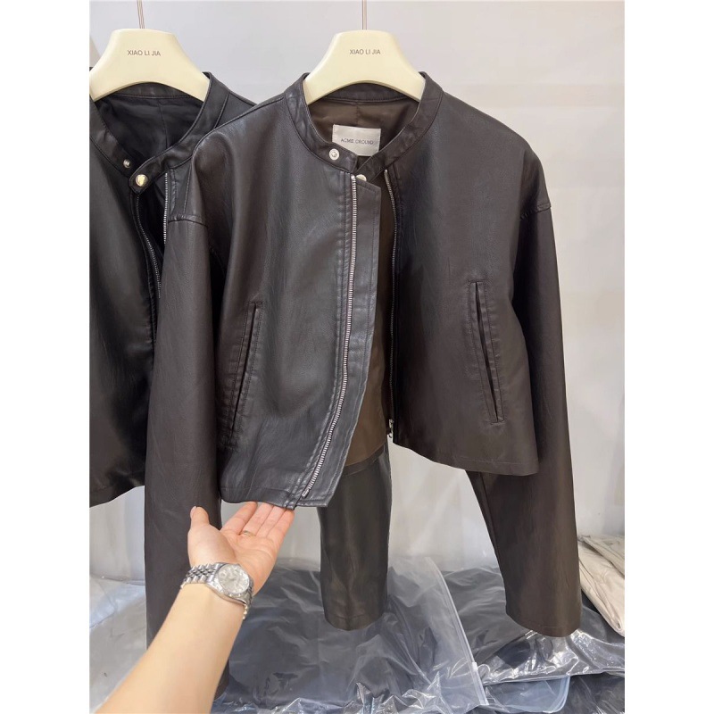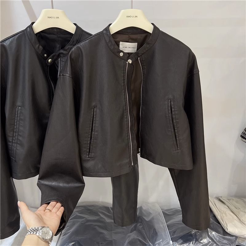 | nameOriginal | Black Leather Jacket Women's 2024 Early Autumn New Korean Fashion Retro Short Motorcycle Jacket Top |