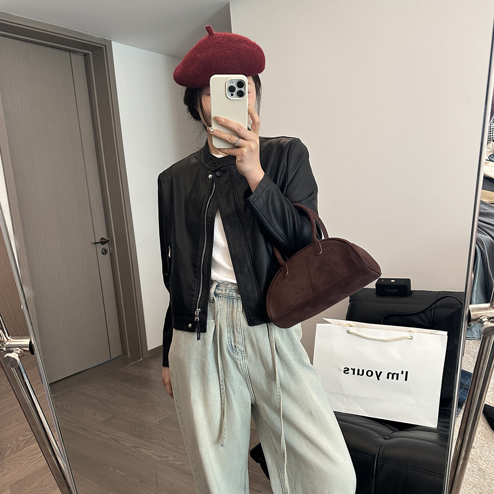 | nameOriginal | Black Leather Jacket Women's Short Slim-fit Handsome Motorcycle Leather Jacket Spring New Fashion Simple Jacket |