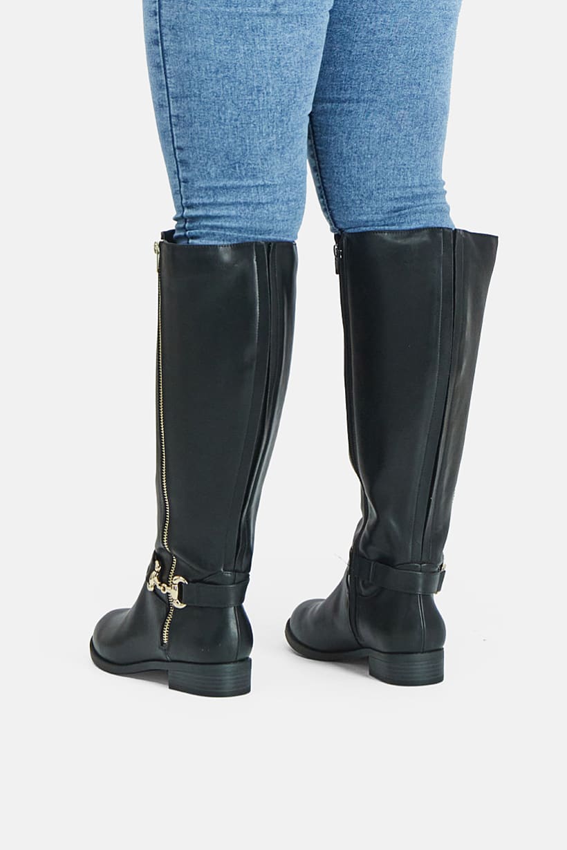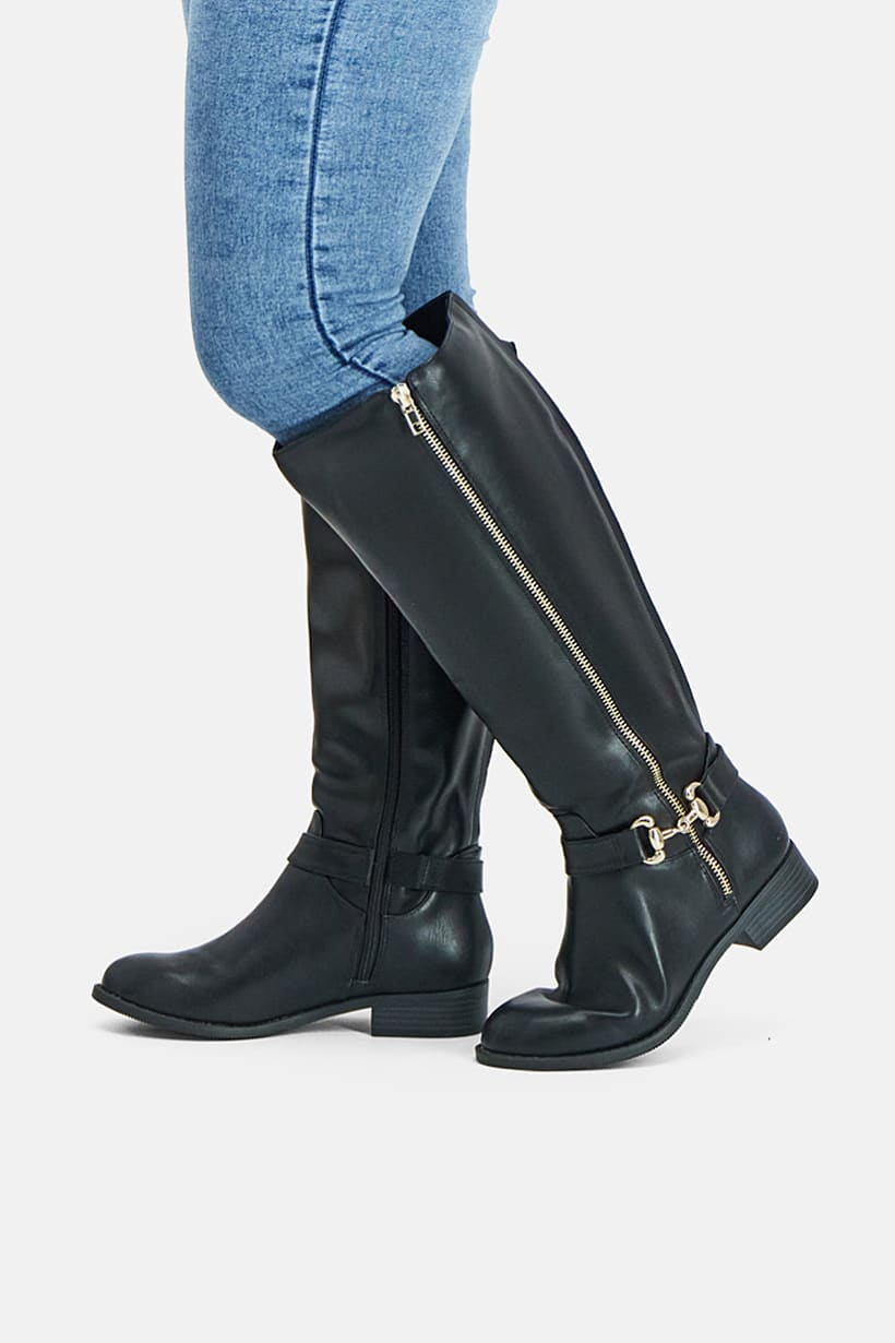 | sub_Categories | Shoes, Boots, women wide leather full zip knee length boots black  |