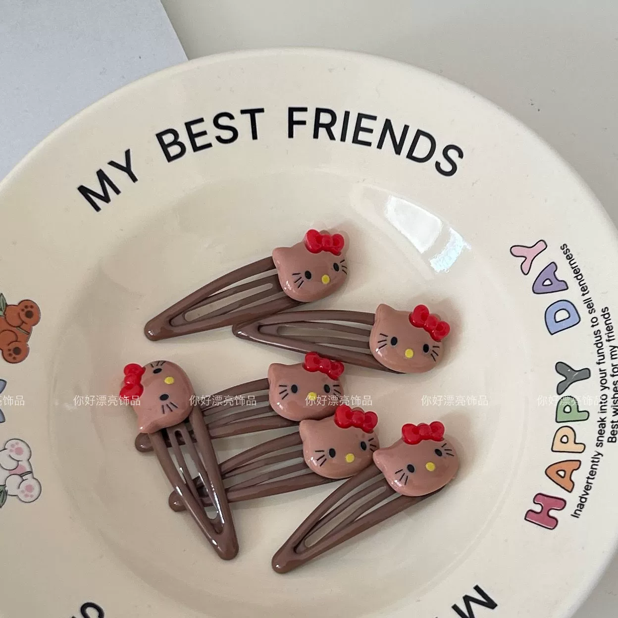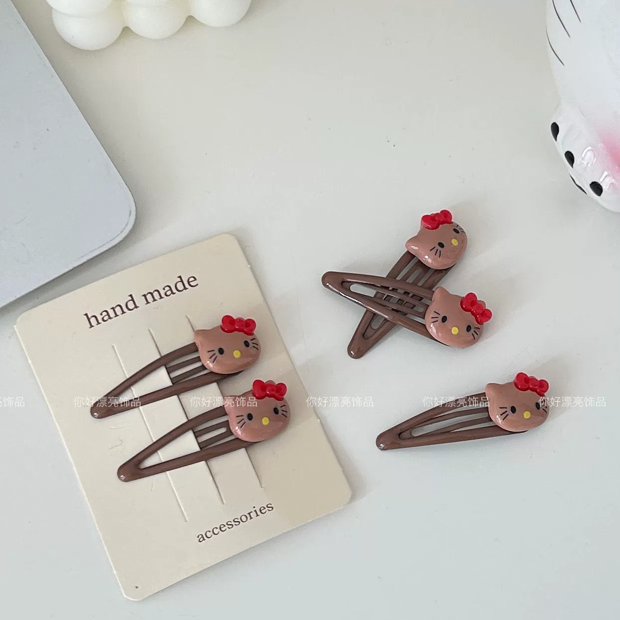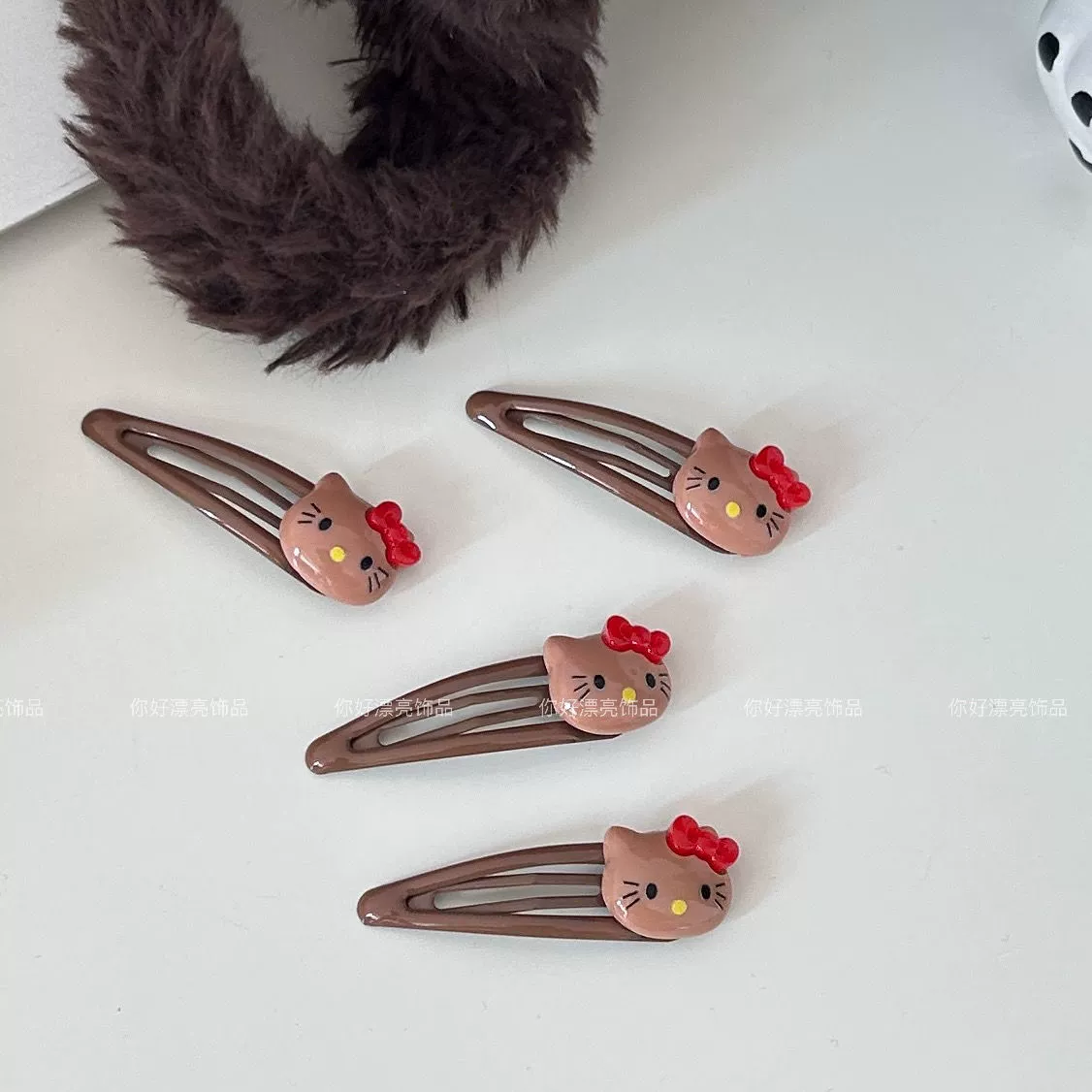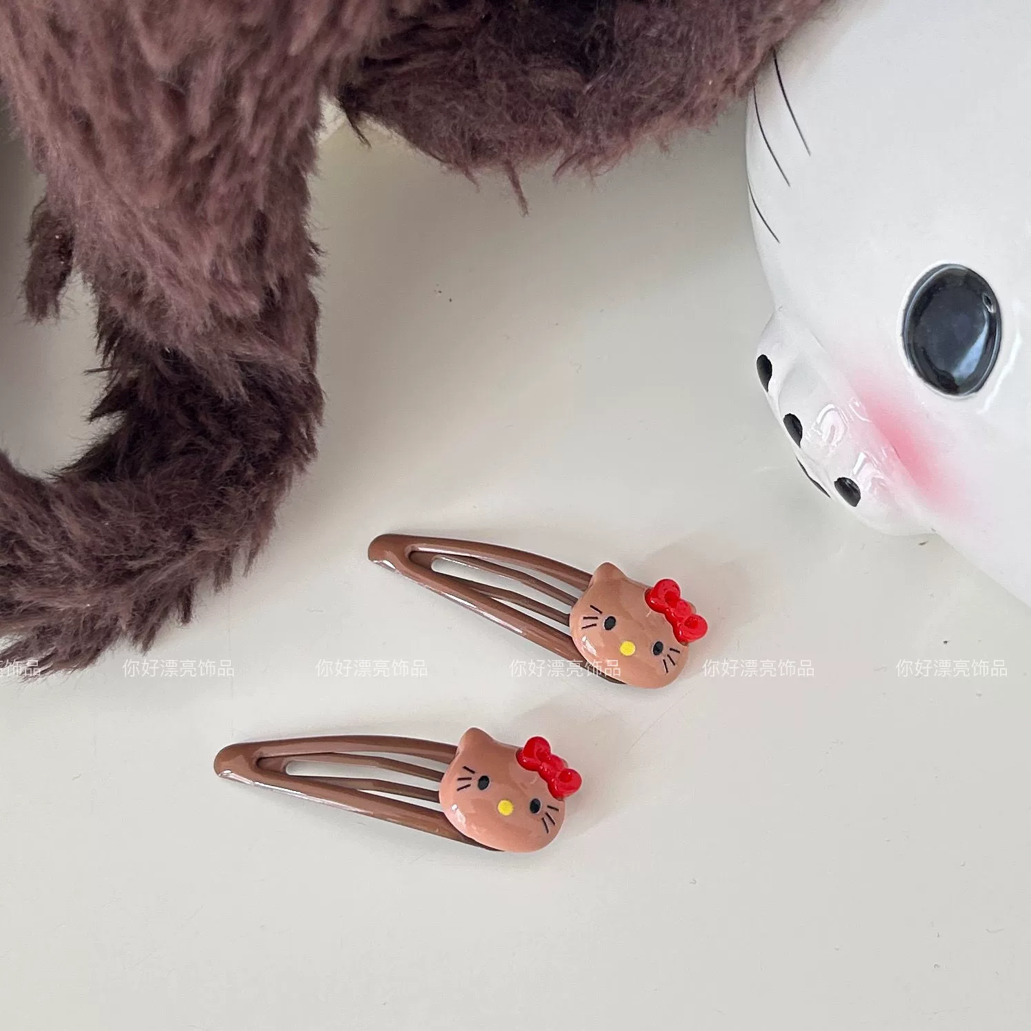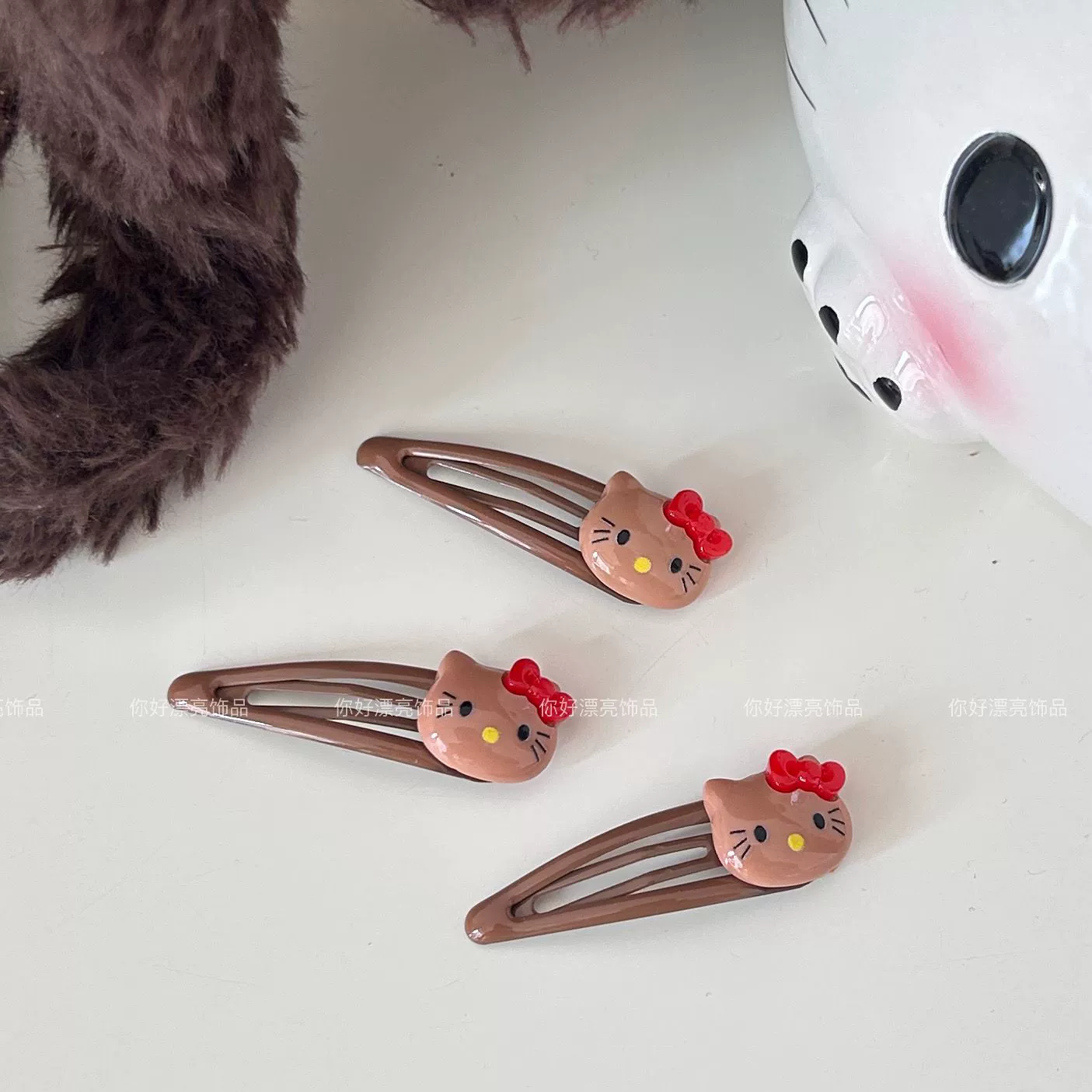 | nameOriginal | Black leather KT cute bb clip coffee color cartoon kitten bangs clip girl heart subculture retro hairpin hair accessories |
