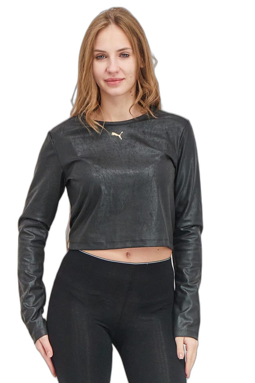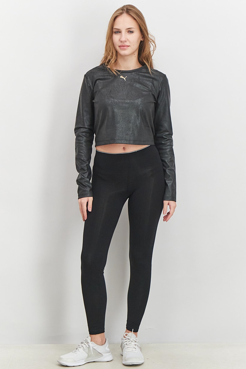 Women Clothing, Sportswear, women crew neck long sleeve leather top black