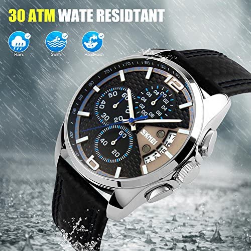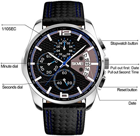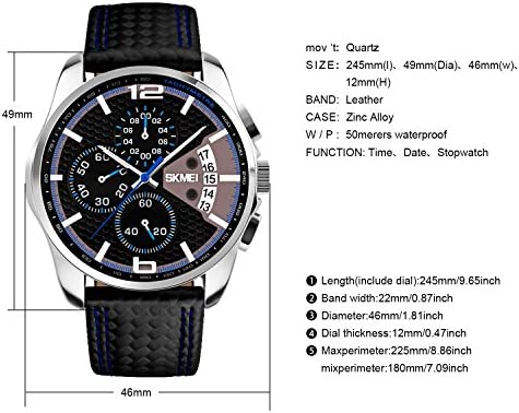 | nameOriginal | Men's Chronograph Watch – Black Leather Strap Analog Quartz Business Causal Wrist Watches for Men |