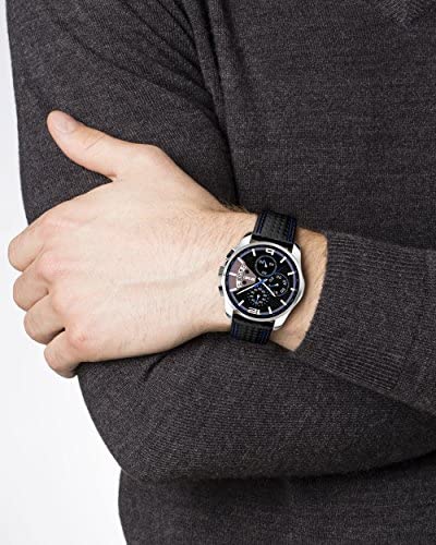 Introducing the Men’s Chronograph Watch – the perfect accessory for the modern man who values style and functionality. This watch features a sleek black leather strap that is both comfortable and durable, making it suitable for everyday wear. The analog quartz movement ensures accurate timekeeping, while the chronograph function allows you to track elapsed time with ease. The black dial is easy to read and features a date display window, making it a practical choice for business and casual occasions. With its classic design and reliable performance, this watch is a must-have for any man who wants to make a statement with his accessories.