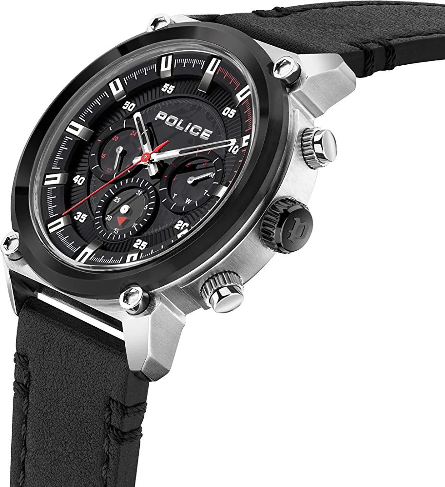 Black Leather Strap Smart Men’s Watch – PL. 14378JSTB/02B by Police Armour.