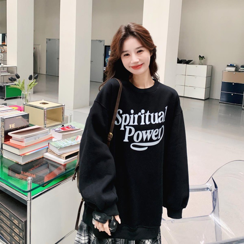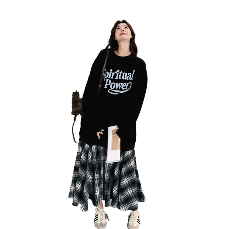 Black letter printed sweater dress spring women’s 2024 new fake two-piece lazy style mid-length sweater dress