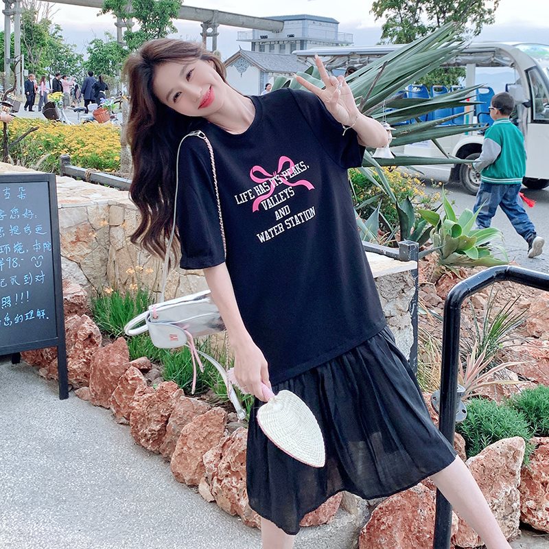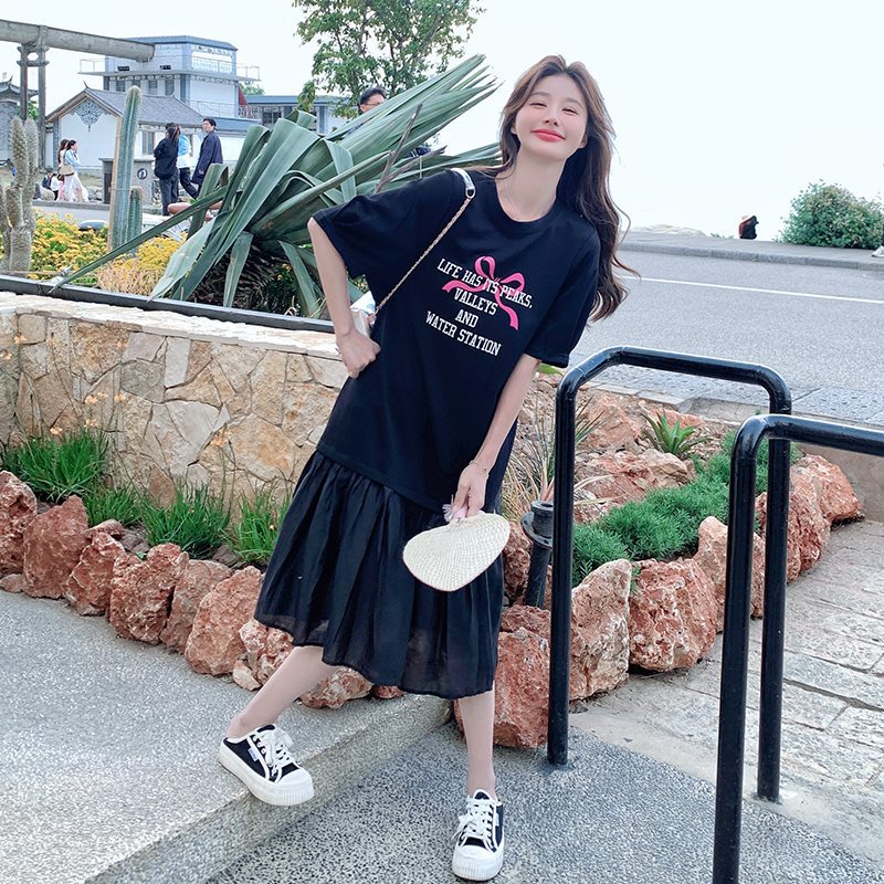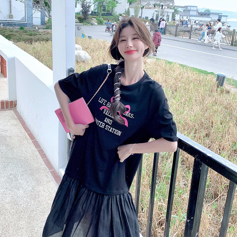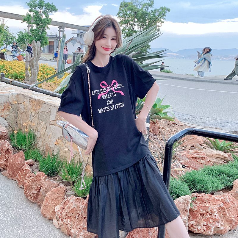 | nameOriginal | Black Letter Printed T-shirt dress Women's Summer 2024 New Loose Slimming Casual Mesh Patchwork Fishtail Skirt |