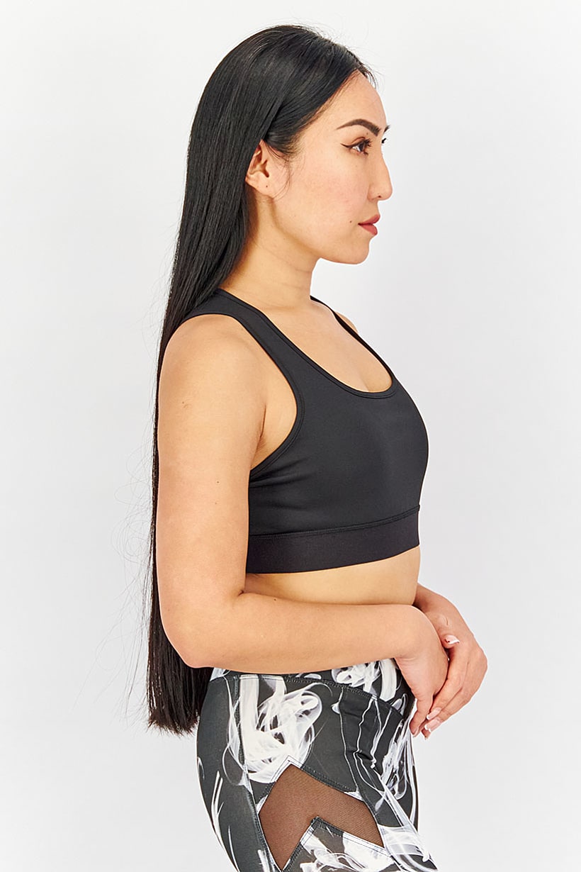 Care : Machine washable, Fit : Sportswear Fit, Size shown : International, Thickness : Light, Type of Sport : Running, Disclaimer : Product color may slightly vary due to photographic lighting sources or your monitor settings., Fabrics : 78% Polyester, 22% Elastane, Occasion : Sport, Pattern & Print : Plain/Solid, Sportswear Type : Sports Bra, Color Family : Black,