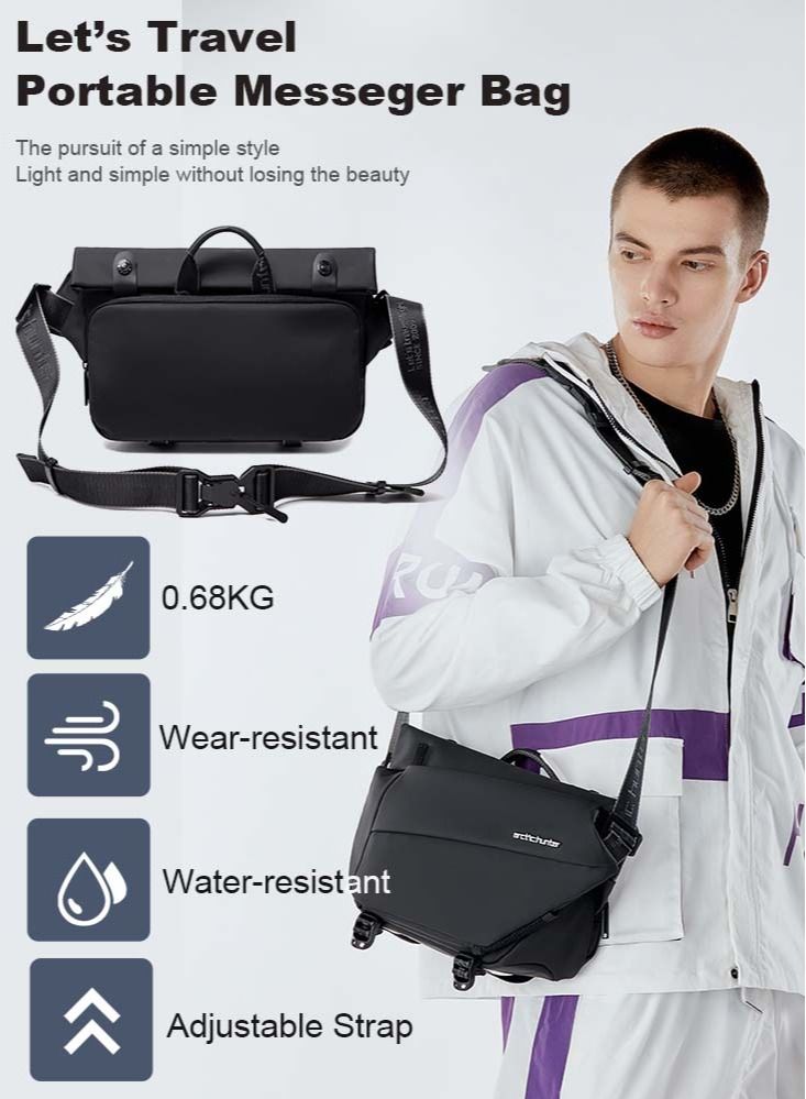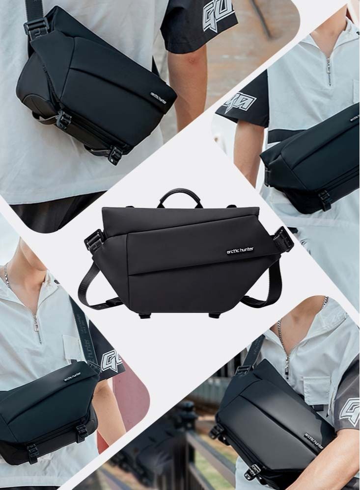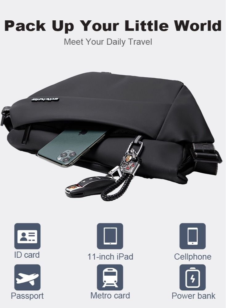 Small Sling Crossbody Bag Shoulder Bag for Men Women,Lightweight One Strap Backpack Messenger Bag Backpack for Hiking Walking Biking Travel Cycling,Black