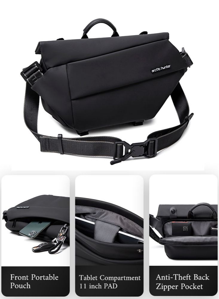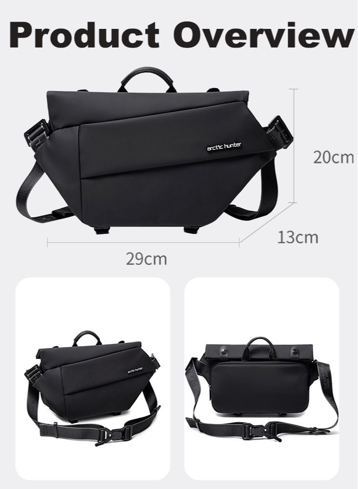 Black Lightweight Crossbody Bag for Men and Women, Ideal for Hiking, Walking, Biking, and Travel.