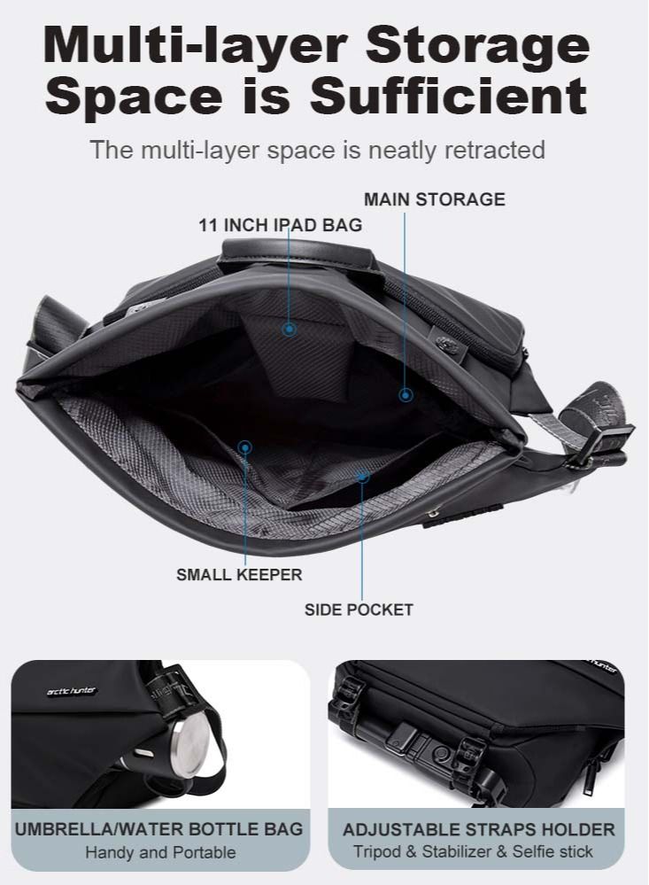 Introducing our Small Sling Crossbody Bag Shoulder Bag, the perfect accessory for both men and women who are always on the go. This lightweight one strap backpack is designed to provide maximum comfort and convenience while you’re out hiking, walking, biking, traveling, or cycling. The sleek black design is both stylish and practical, making it a versatile addition to your wardrobe. The crossbody bag features a spacious main compartment with multiple pockets to keep your essentials organized and easily accessible. The adjustable strap allows you to customize the fit to your liking, ensuring that you can wear it comfortably for extended periods of time. Whether you’re commuting to work or exploring new trails, this messenger bag backpack is the perfect companion for all your adventures.