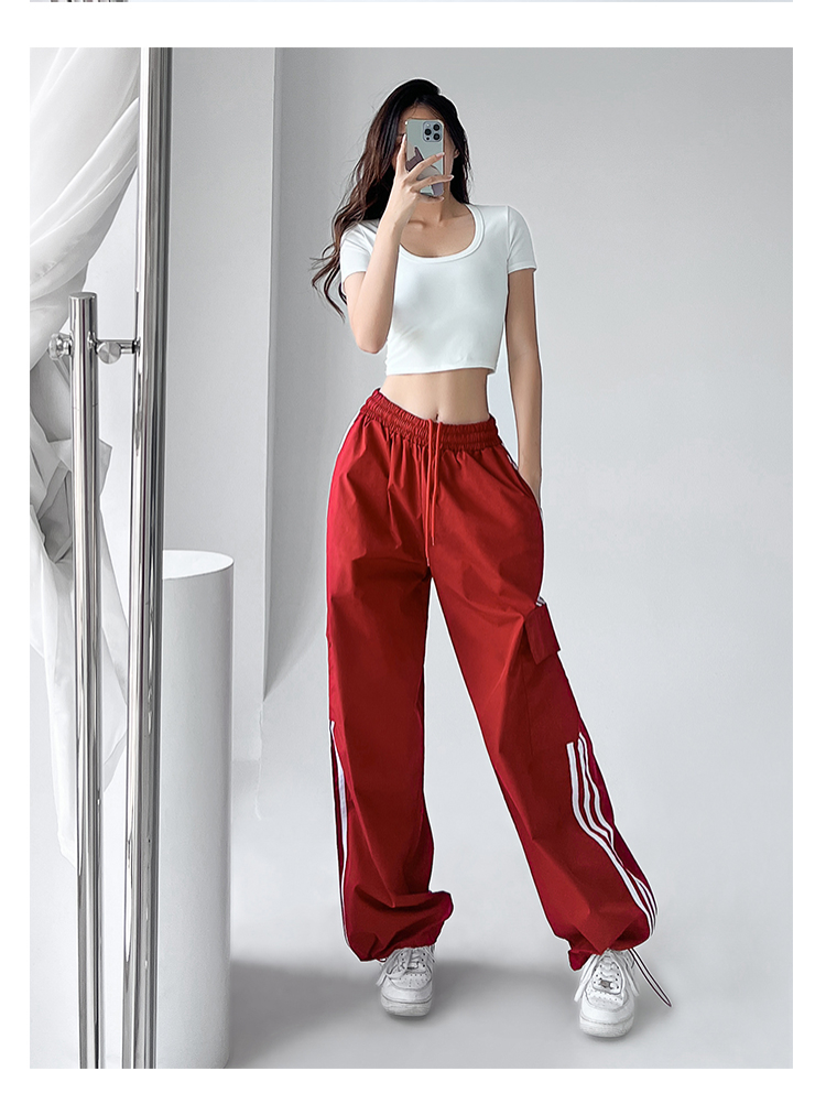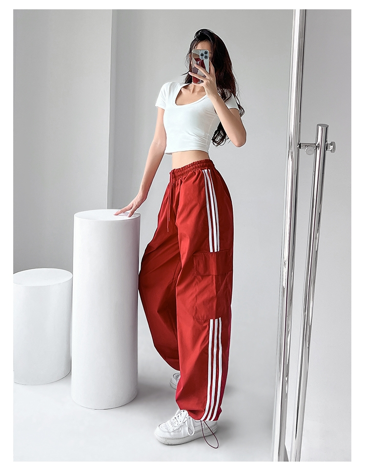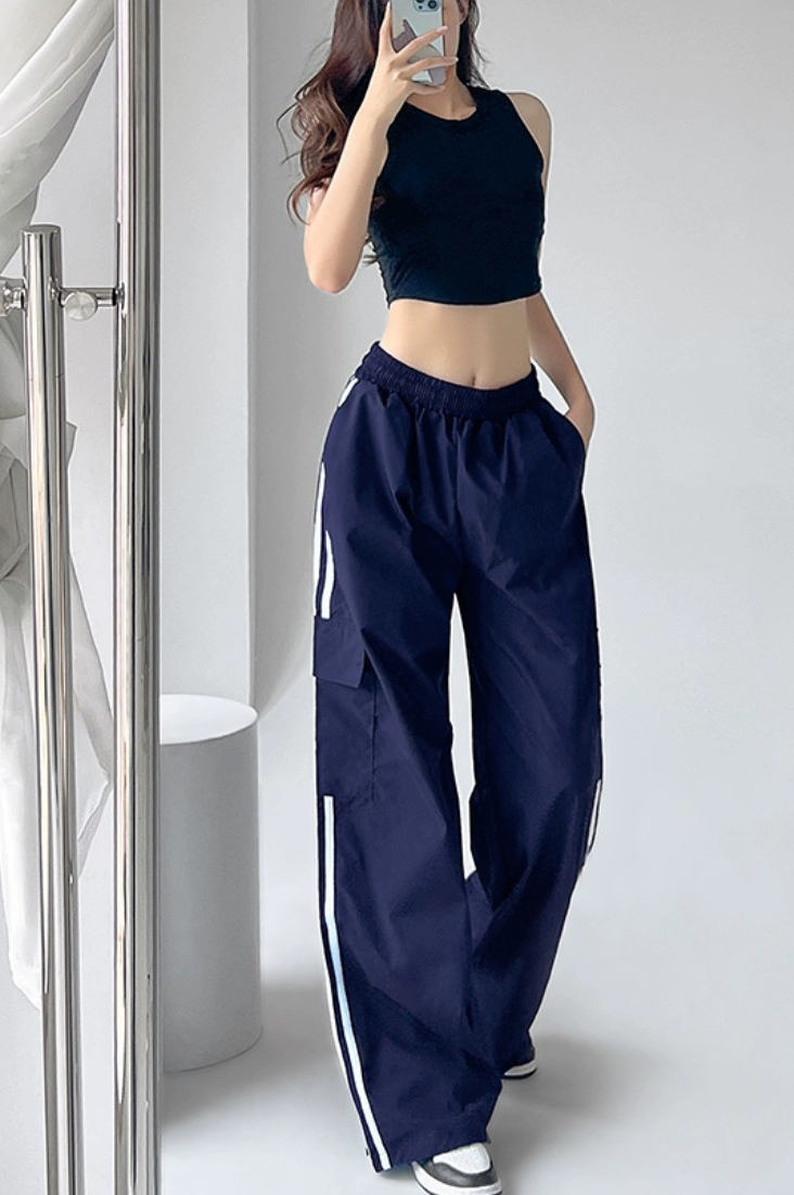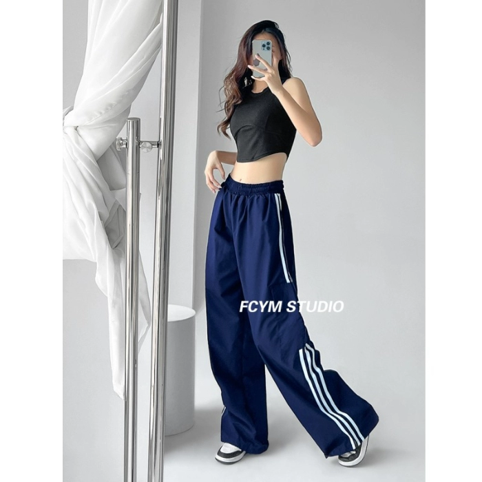 | nameOriginal | Black little American retro workwear wide-leg pants spring and autumn simple casual pants high-waisted drape sports pants |