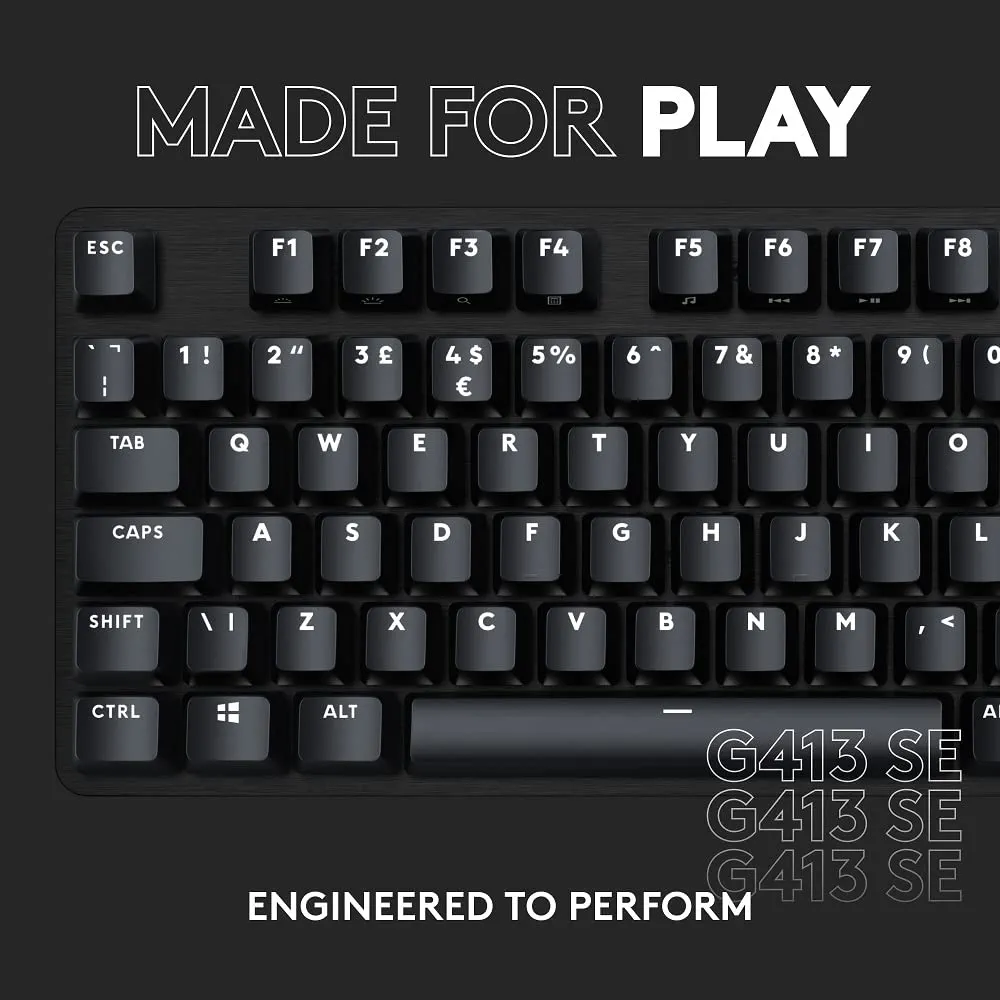Featuring a sleek black-brushed aluminum top case, the G413 SE offers minimal flex and maximum durability, ensuring a premium gaming experience.