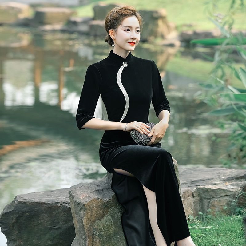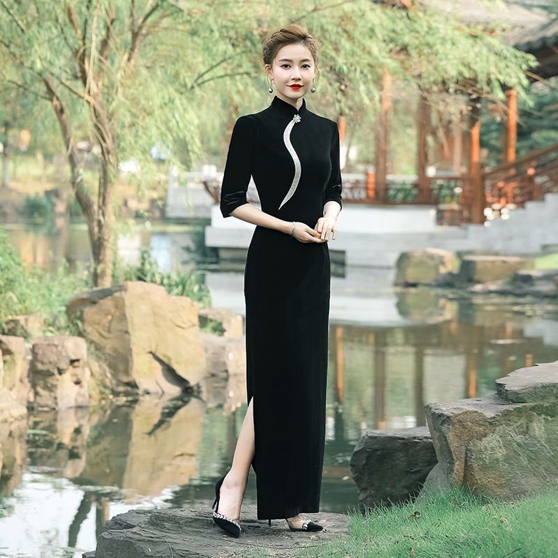 | nameOriginal | Black Long Cheongsam 2022 New High-end Elegant plus size Slimming Evening Dress Spring Wedding Dress Daily |