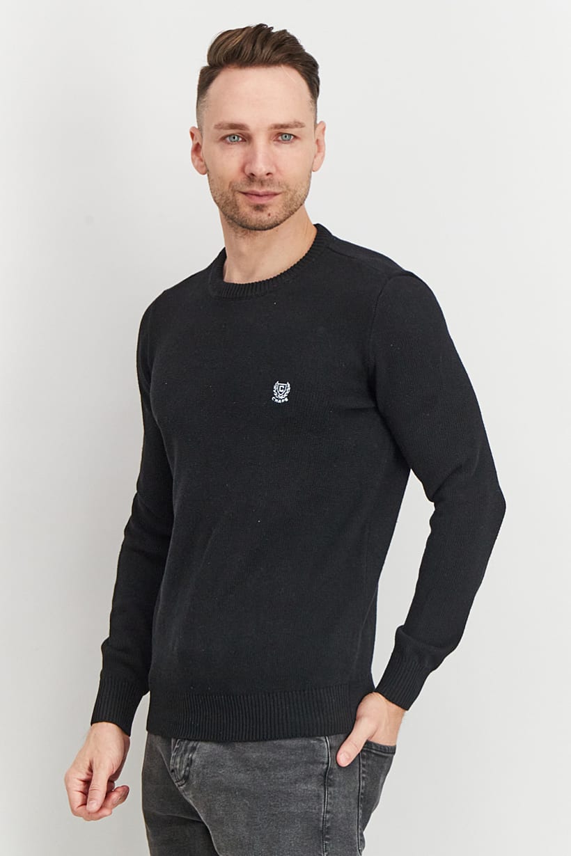 Black Long Sleeve Sweater with Embroidered Logo for Men.