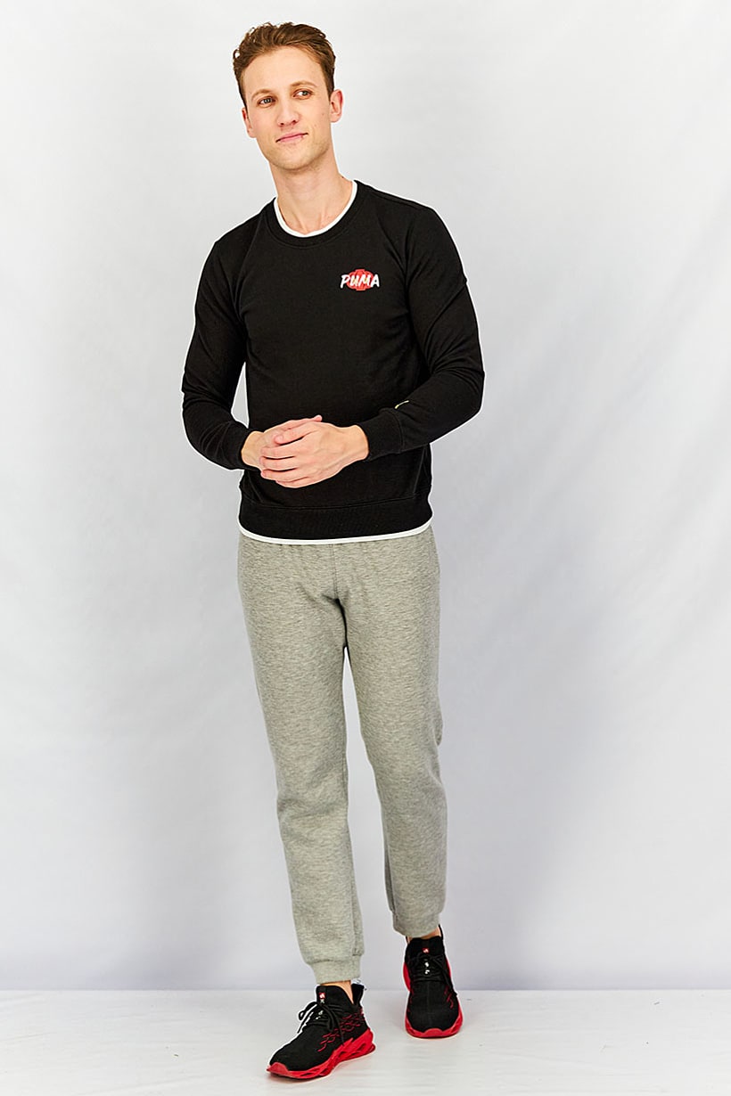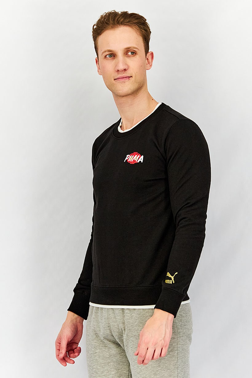 Men Sportswear Fit Long Sleeve Logo Print Sweatshirt, Black