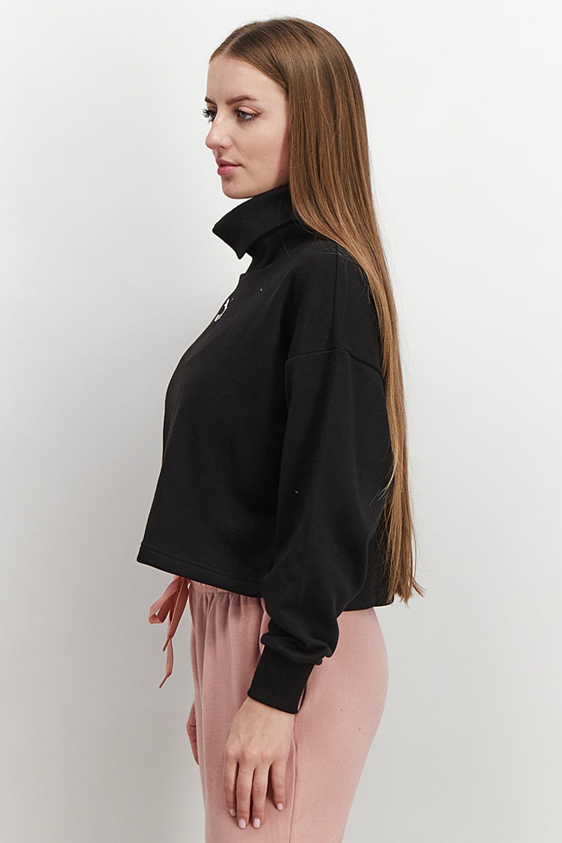 | descriptionOriginal | Bottom Hem : Elasticized, Care : Machine washable, Fit : Sportswear Fit, Ideal For : Women, Size shown : Asian, Sleeve Length : Long Sleeve, Thickness : Light, Types of Neckline & Collar : Turtle neckline, Types of Sleeve : Longsleeve, Disclaimer : Product color may slightly vary due to photographic lighting sources or your monitor settings., Fabrics : 100% Cotton, Occasion : Sport, Pattern & Print : Embroidered logo, Sportswear Type : Sweatshirts, Types of Closures : Pullover, Color Family : Black, Type of Sport : Outdoors, |