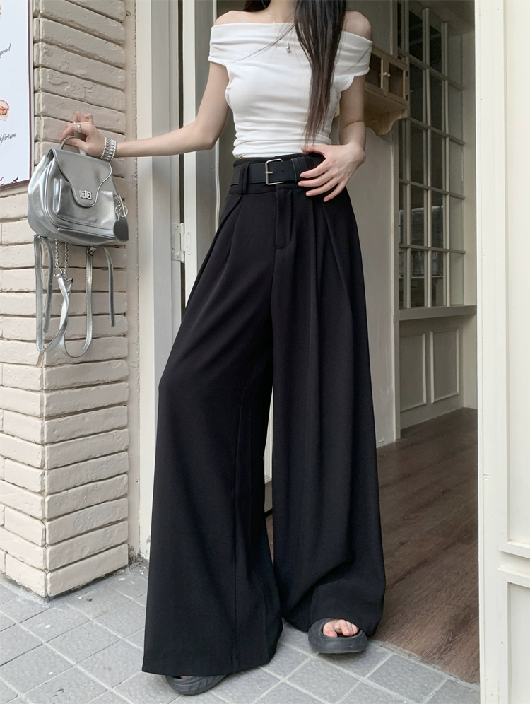 | nameOriginal | Black loose, slim, high-waisted floor-length suit pants |