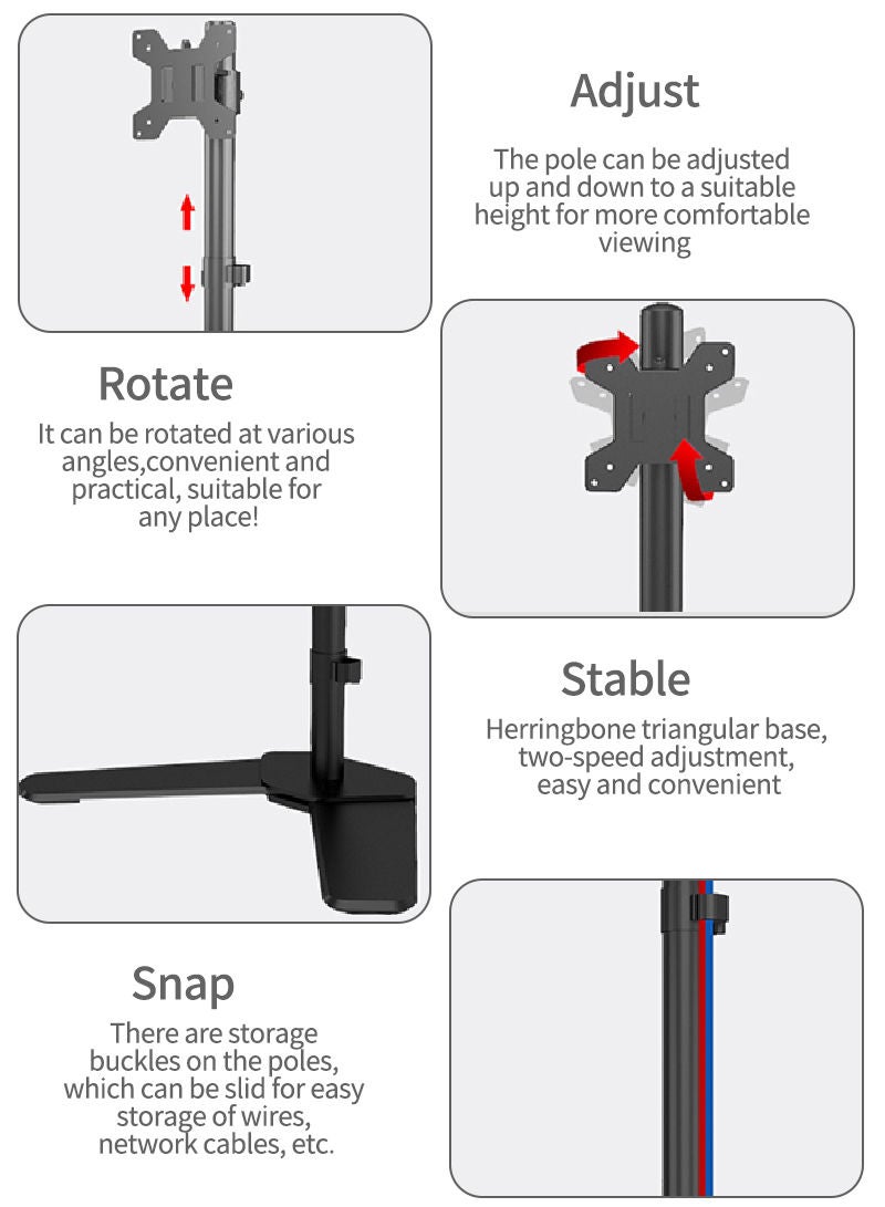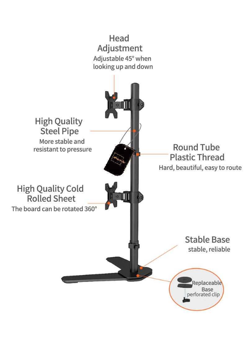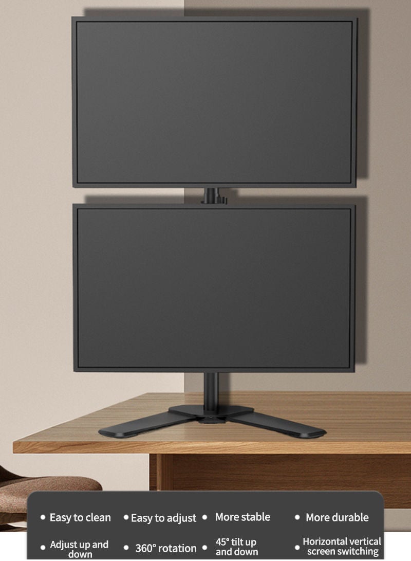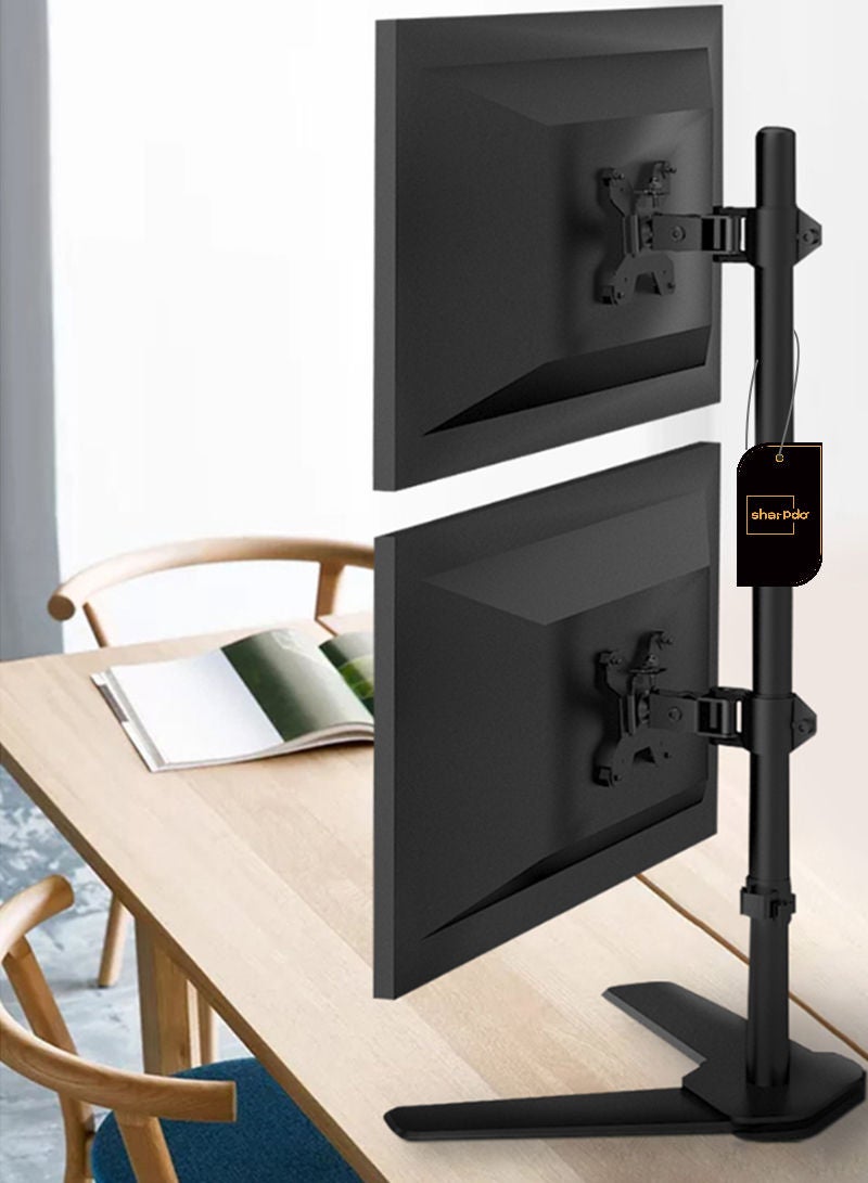 | nameOriginal | Dual Monitor Stand – Vertical Stack Screen Free-Standing Monitor Riser Fits Two 10 to 17 Inch Screen with Swivel, Tilt, Height Adjustable M073 Black |