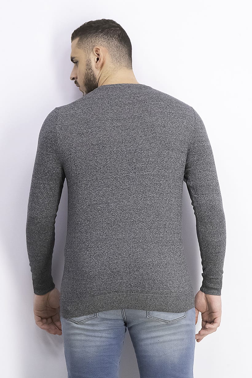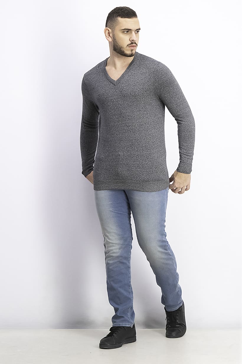 | nameOriginal | Men V-neck Long Sleeve Cotton Sweatshirt, Black Marled |