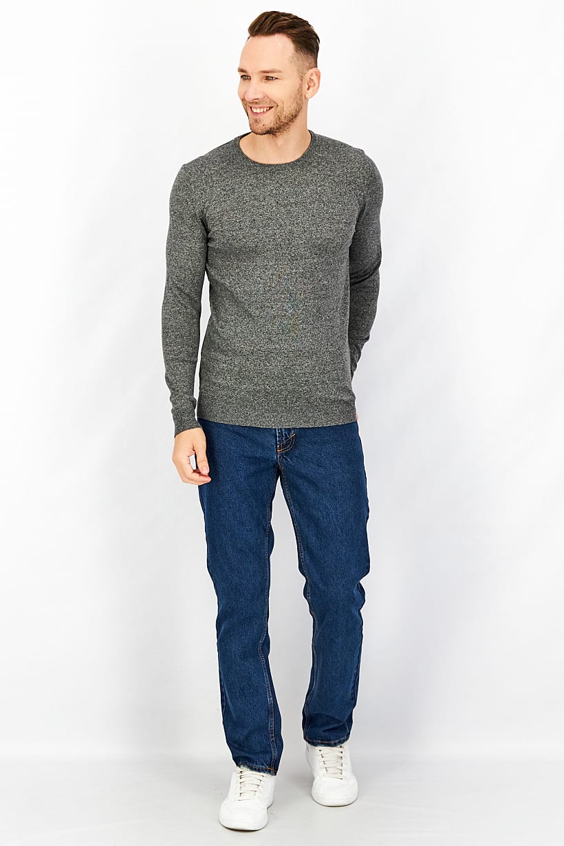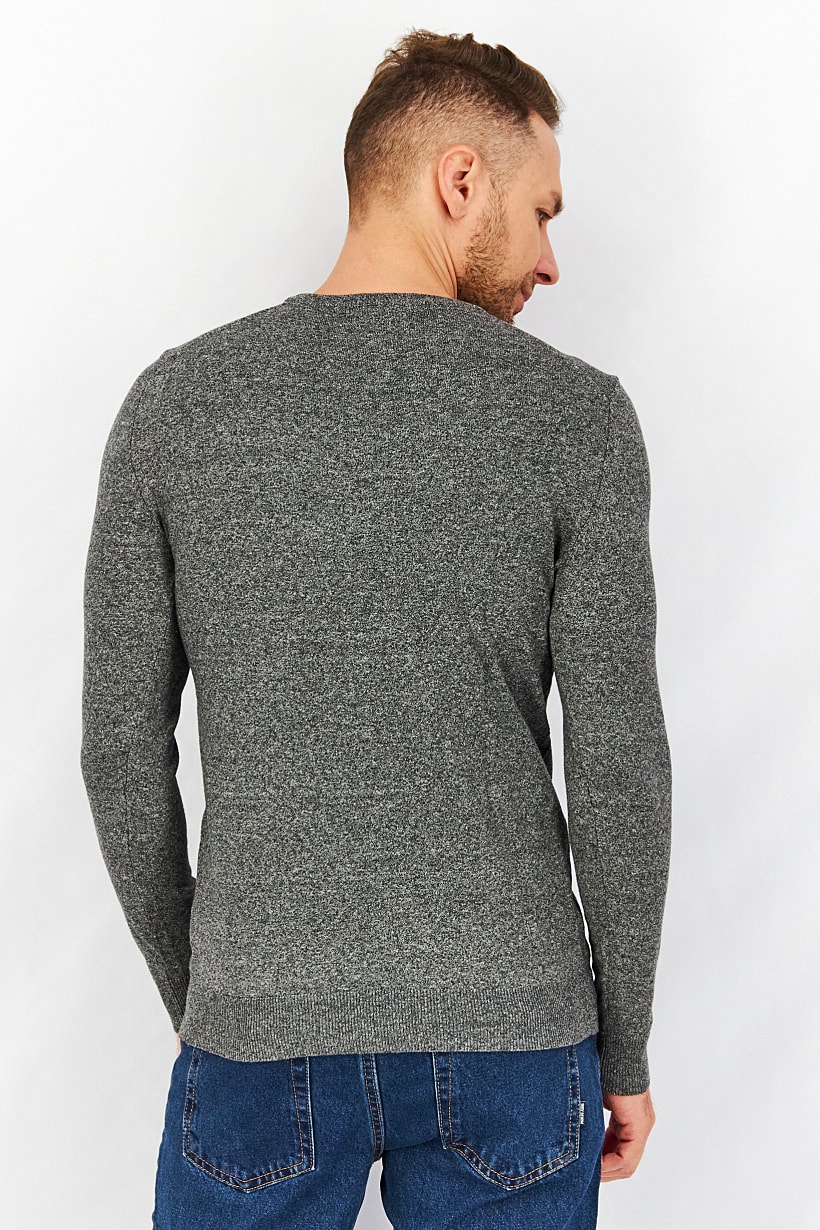 Black Marled Textured Men’s Crew Neck Sweatshirt with Long Sleeves.