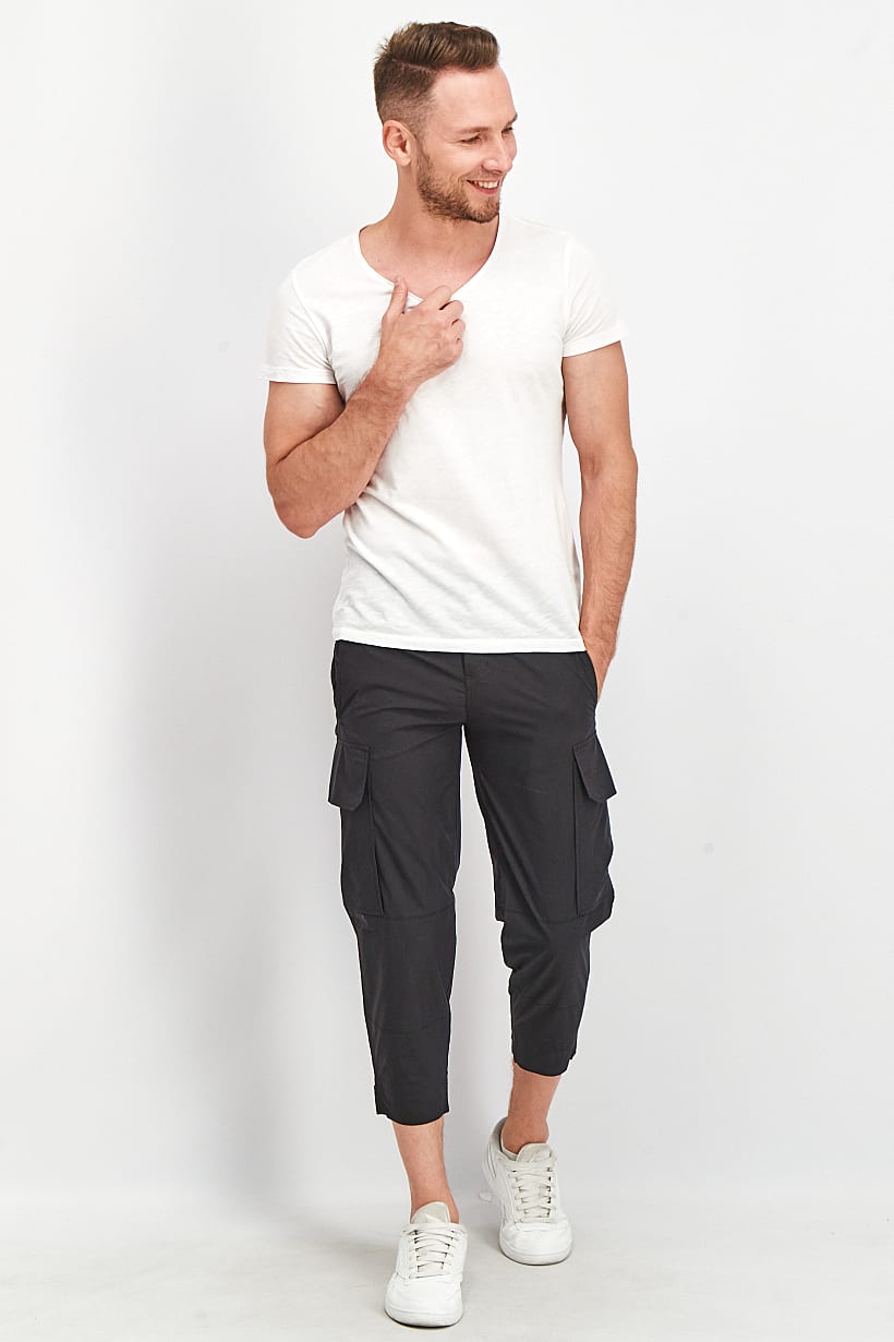 Men Clothing, Pants, men solid cargo pocket pants black
