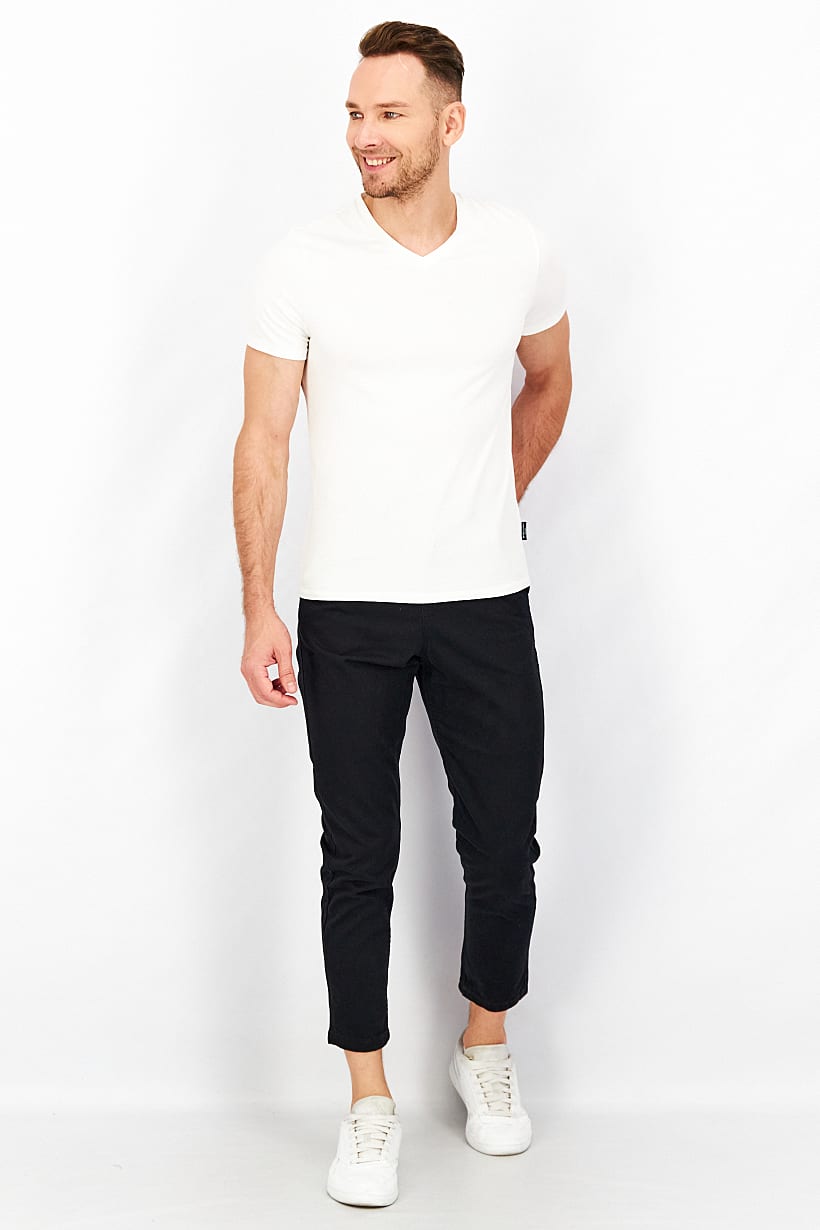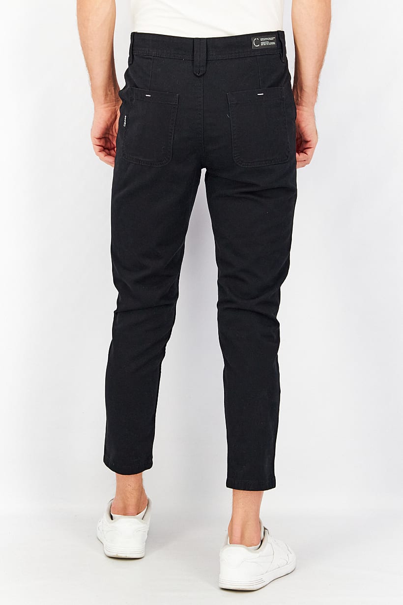 | descriptionOriginal | Care : Machine washable, Fit : Regular fit, No of pockets : 5, Pant Style : Chino, Size shown : Inches, Stretch Type : No stretch, Types of Jeans Rise : Mid rise, Bottom Closure : Button, Bottom Style/Pattern : Five pocket style, Disclaimer : Product color may slightly vary due to photographic lighting sources or your monitor settings., Fabrics : 100% Cotton, Occasion : Casual, Pattern & Print : Plain/Solid, Color Family : Black, |
