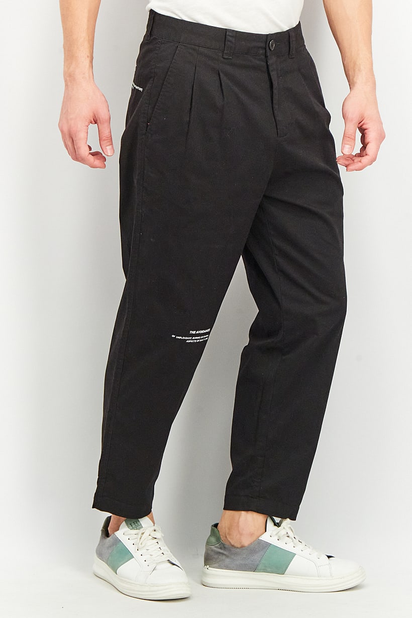 | descriptionOriginal | Care : Machine washable, Fit : Regular fit, No of pockets : 4, Pant Style : Chino, Size shown : International, Stretch Type : No stretch, Types of Jeans Rise : Low rise, Bottom Closure : Button, Zipper fly, Bottom Style/Pattern : Four pocket style, Disclaimer : Product color may slightly vary due to photographic lighting sources or your monitor settings., Fabrics : 100% Cotton, Occasion : Casual, Pattern & Print : Plain/Solid, Color Family : Black, |