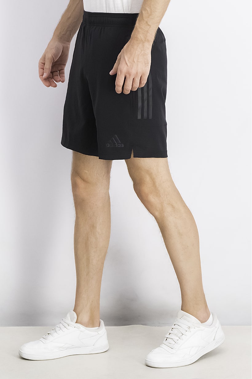 Bottom Hem : Straight, Care : Machine washable, Fit : Sportswear Fit, Size shown : Asian, Thickness : Light, Type of Sport : Training, Bottom Closure : Drawstring, Disclaimer : Product color may slightly vary due to photographic lighting sources or your monitor settings., Fabrics : 100% Polyester, Pattern & Print : Brand Logo, Stripe, Sportswear Type : Shorts, Types of Closures : Drawstring, Color Family : Black,