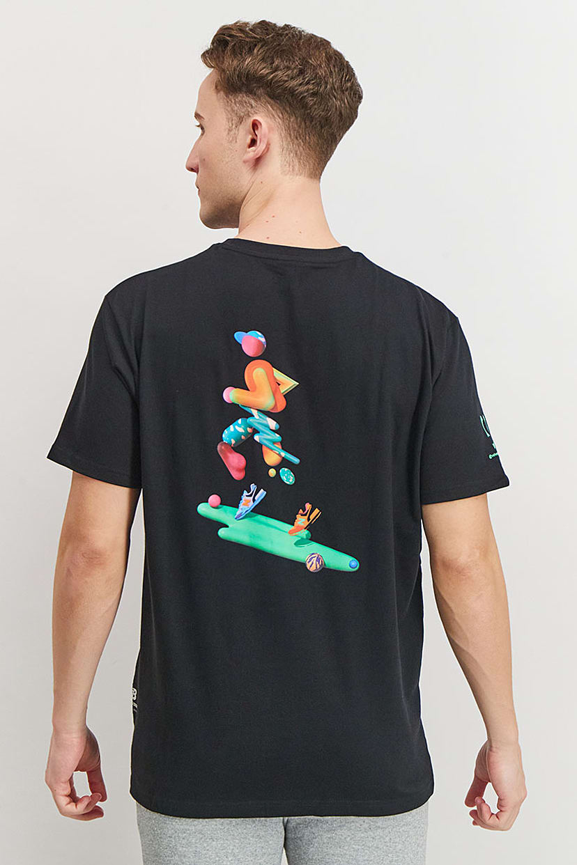 This product is easy to care for as it is machine washable. It has a relaxed fit and is available in US sizes. The fabric is made of 100% cotton and is light in thickness, making it suitable for training. Please note that the product color may appear slightly different due to lighting or monitor settings. The t-shirt features a brand logo print and is categorized as sportswear. It comes in the color black.
