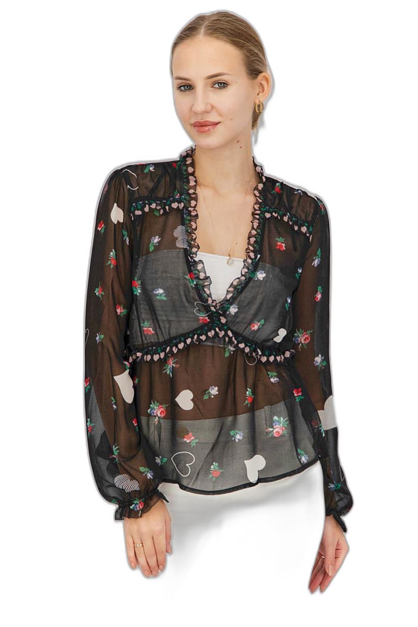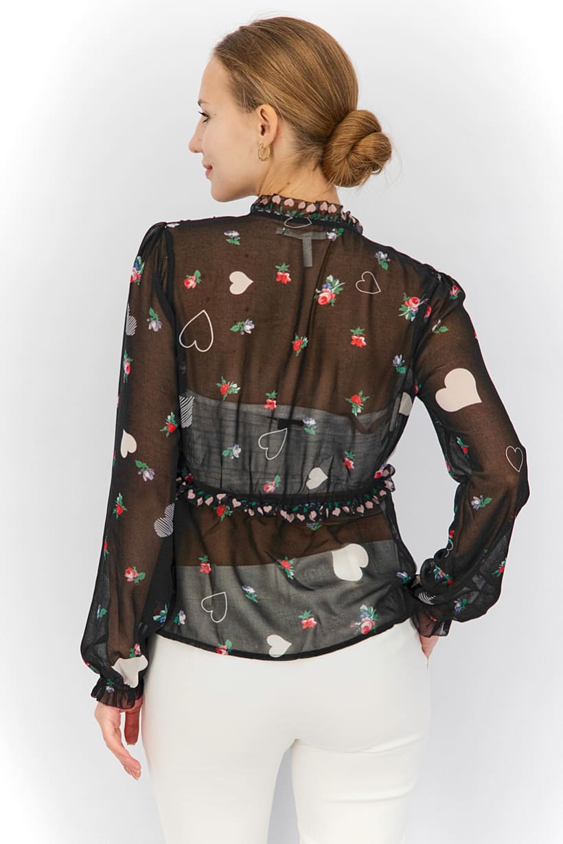 | nameOriginal | Women V-neck Long Sleeve Allover Print Mesh Top, Black |