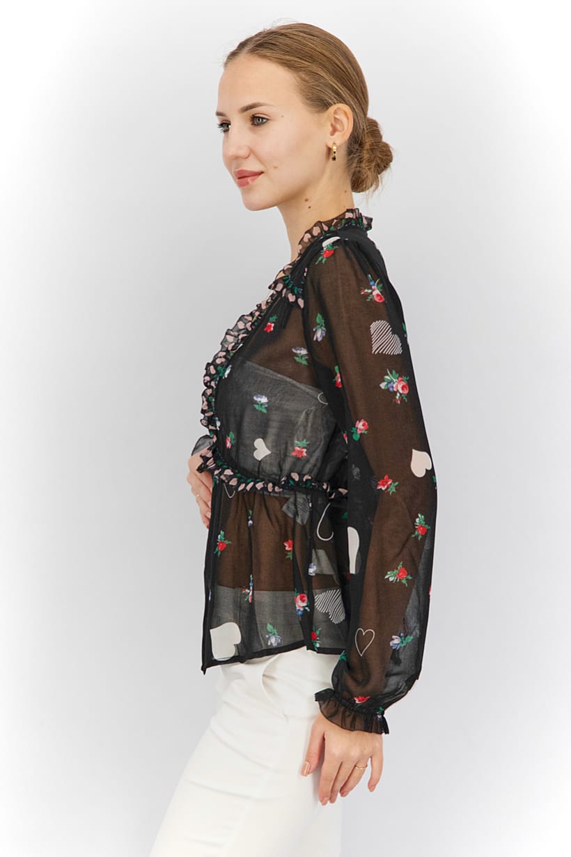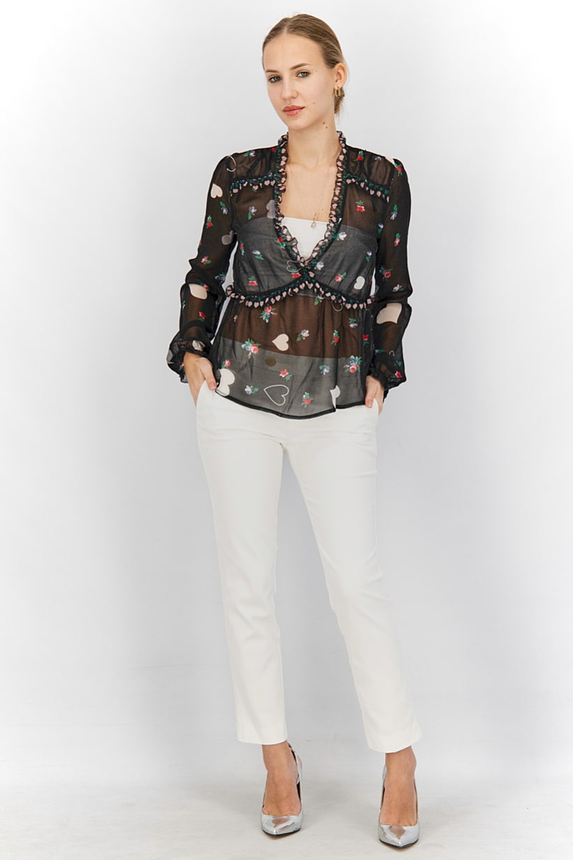 | descriptionOriginal | Care : Machine washable, Fit : Regular fit, Size shown : International, Top Style : Blouse, Types of Hem : Straight hem, Types of Neckline & Collar : V-neckline, Types of Sleeve : Longsleeve, Disclaimer : Product color may slightly vary due to photographic lighting sources or your monitor settings., Fabrics : 100% Polyester, Occasion : Casual, Pattern & Print : Allover print, Types of Closures : Pullover, Color Family : Black, |
