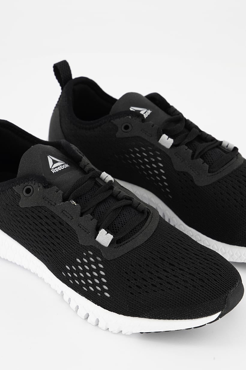 This product is designed for women who are into training. It is perfect for sports occasions. The shoe is secured with a lace-up closure and has an almond-shaped toe. The rubber sole provides excellent grip and durability. The shoe is made of high-quality fabric and comes in a color combination of black, silver, and white.