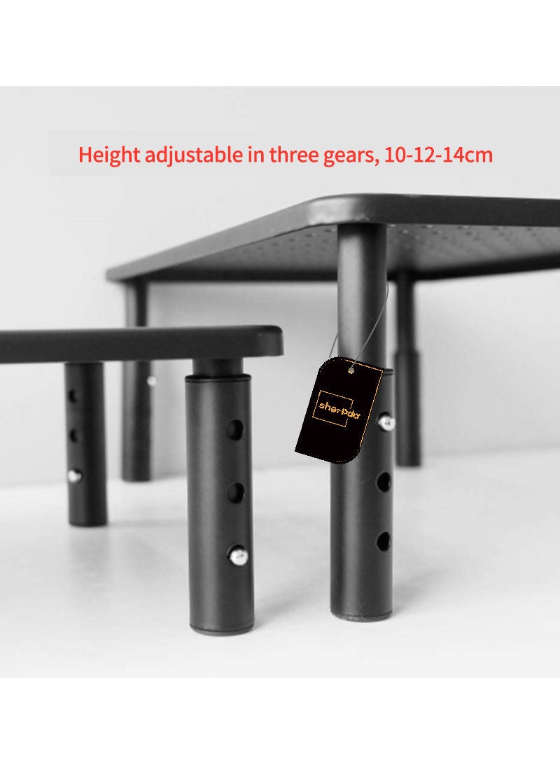 The Metal Monitor Stand with Storage Drawer is the perfect addition to any home or office workspace. This sleek and modern stand is designed to elevate your computer, laptop, printer, or notebook to a comfortable viewing height, reducing strain on your neck and eyes. The stand is made of durable metal and finished in a stylish black color that complements any decor.